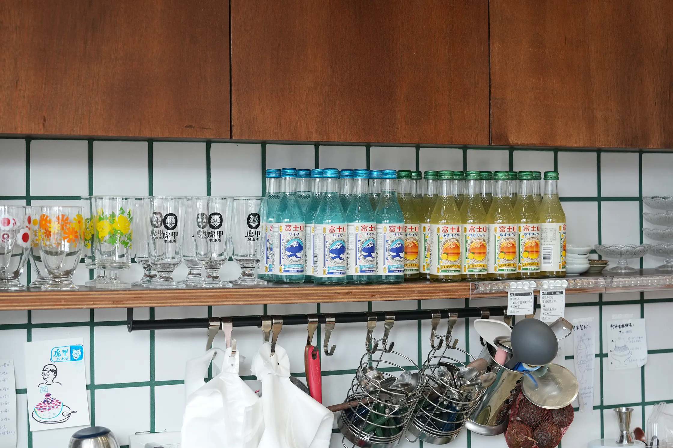 ▼店內熱門的「忘憂冰淇淋汽水」是用日本富士山汽水當基底,再加上冰淇淋,原料都直接擺在開放式吧檯讓你看。