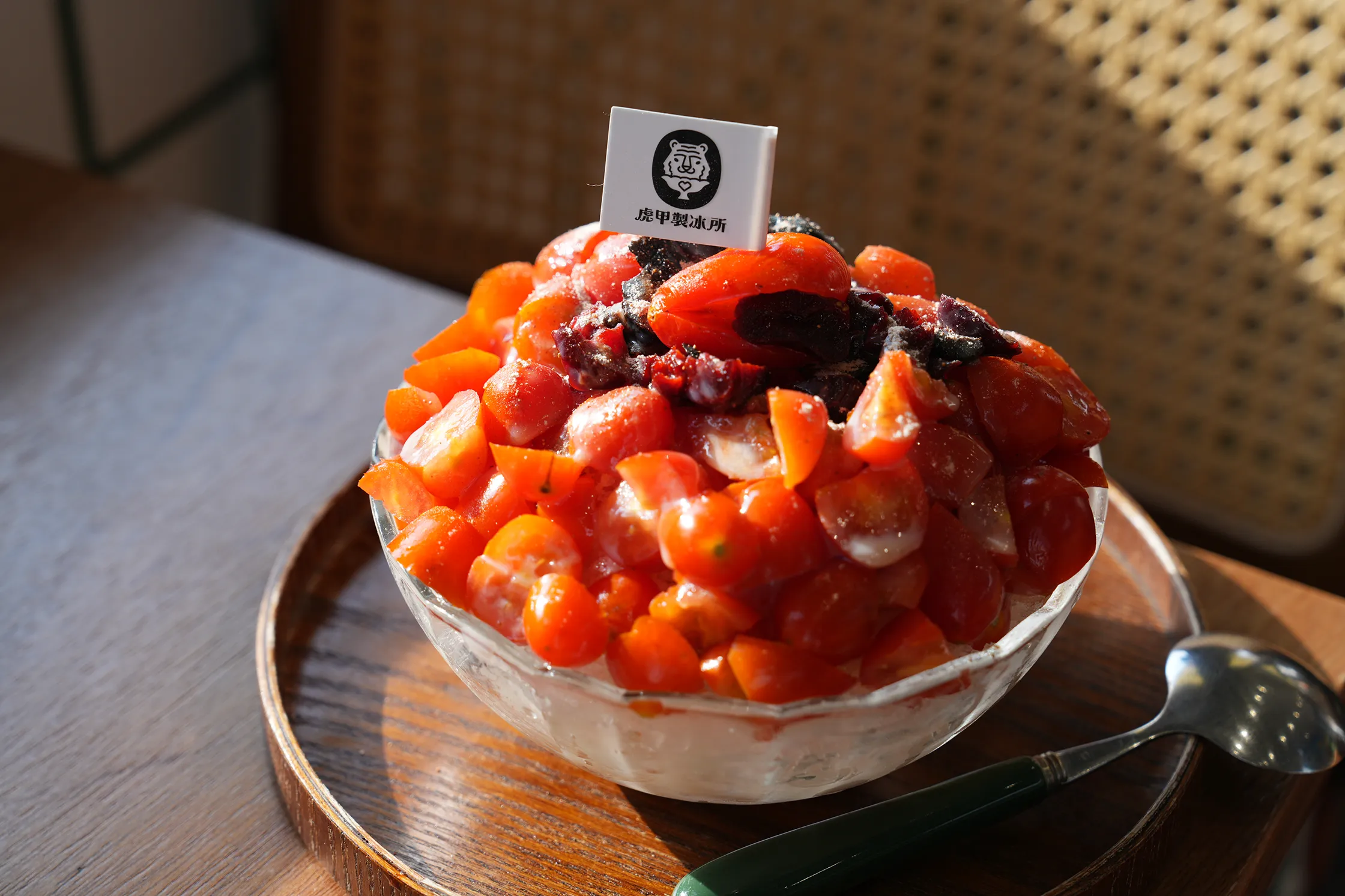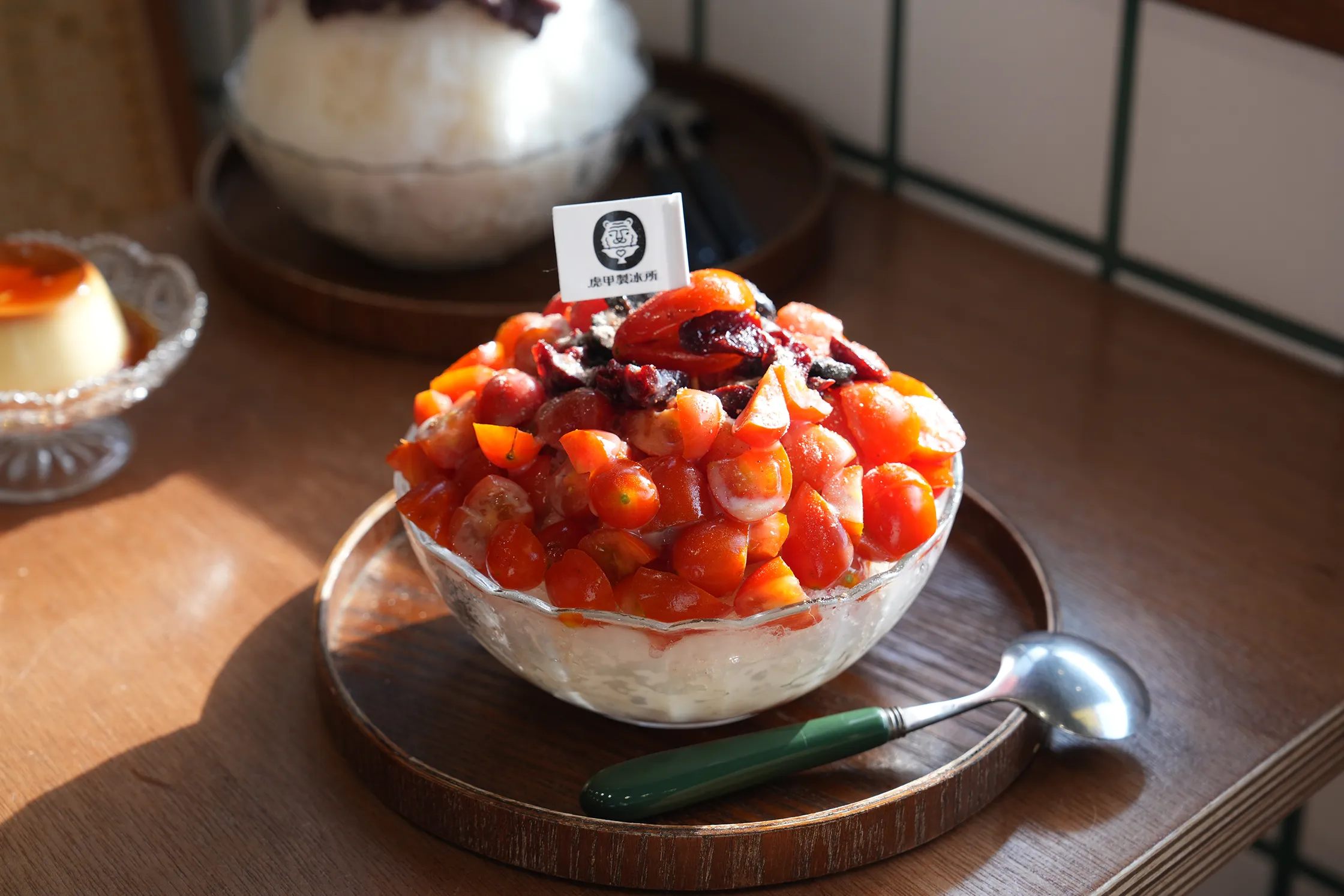 ▼這碗可是店內的超人氣商品,滿滿的草莓不稀奇,滿滿的番茄應該不常見吧!現切新鮮番茄,再搭上李子類的蜜餞,酸甜可口,沒有太多調味就純粹水果的果香原味,喜歡吃番茄的你,這碗必點。