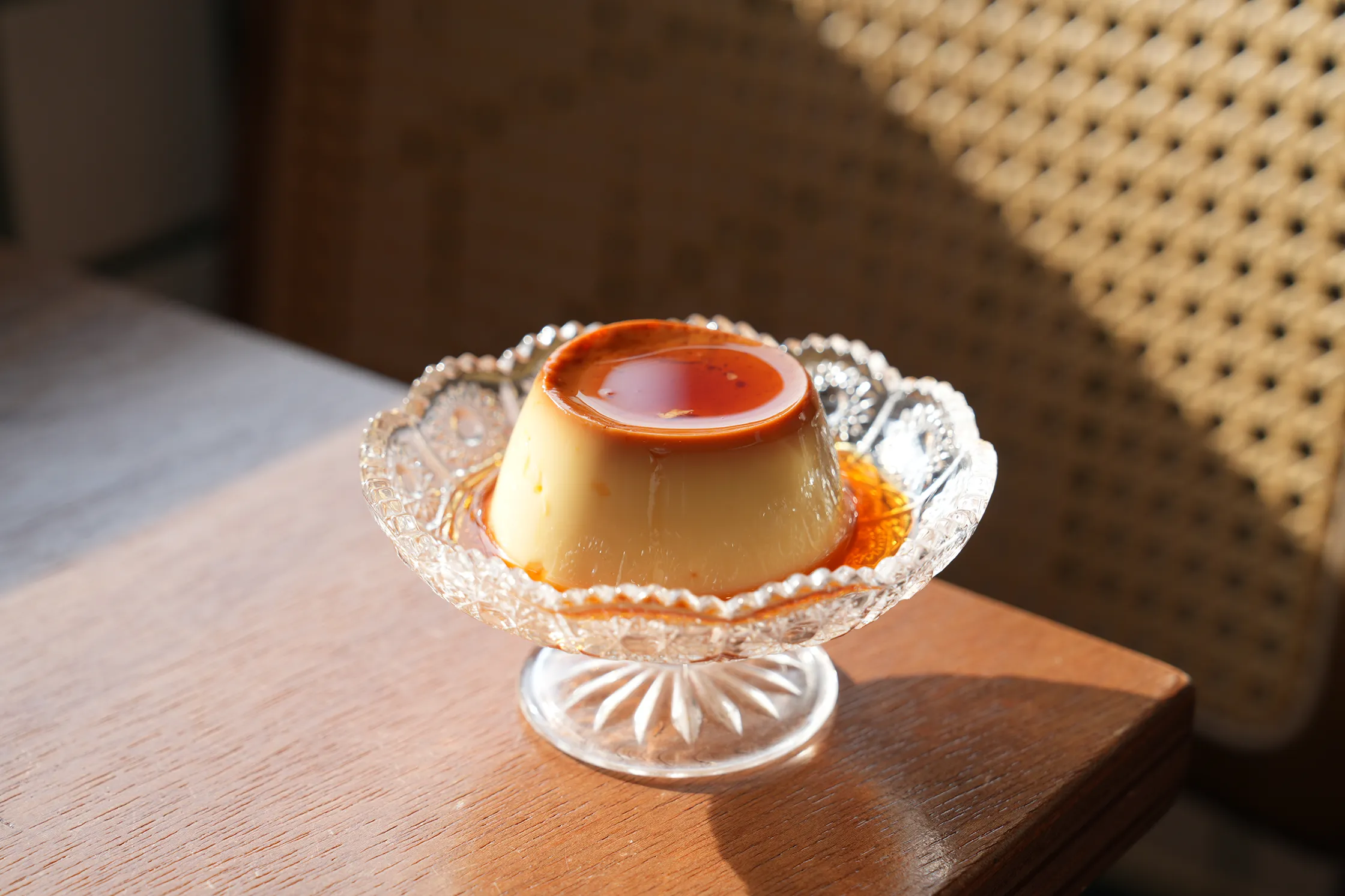 ▼布丁亦是「虎甲製冰所」的主力產品,不只冰品會加布丁,也可以點單顆來品嘗,擺上小碟子很有昭和風的感覺,口感綿密比較甜,沒有大人系布丁的焦糖苦味。