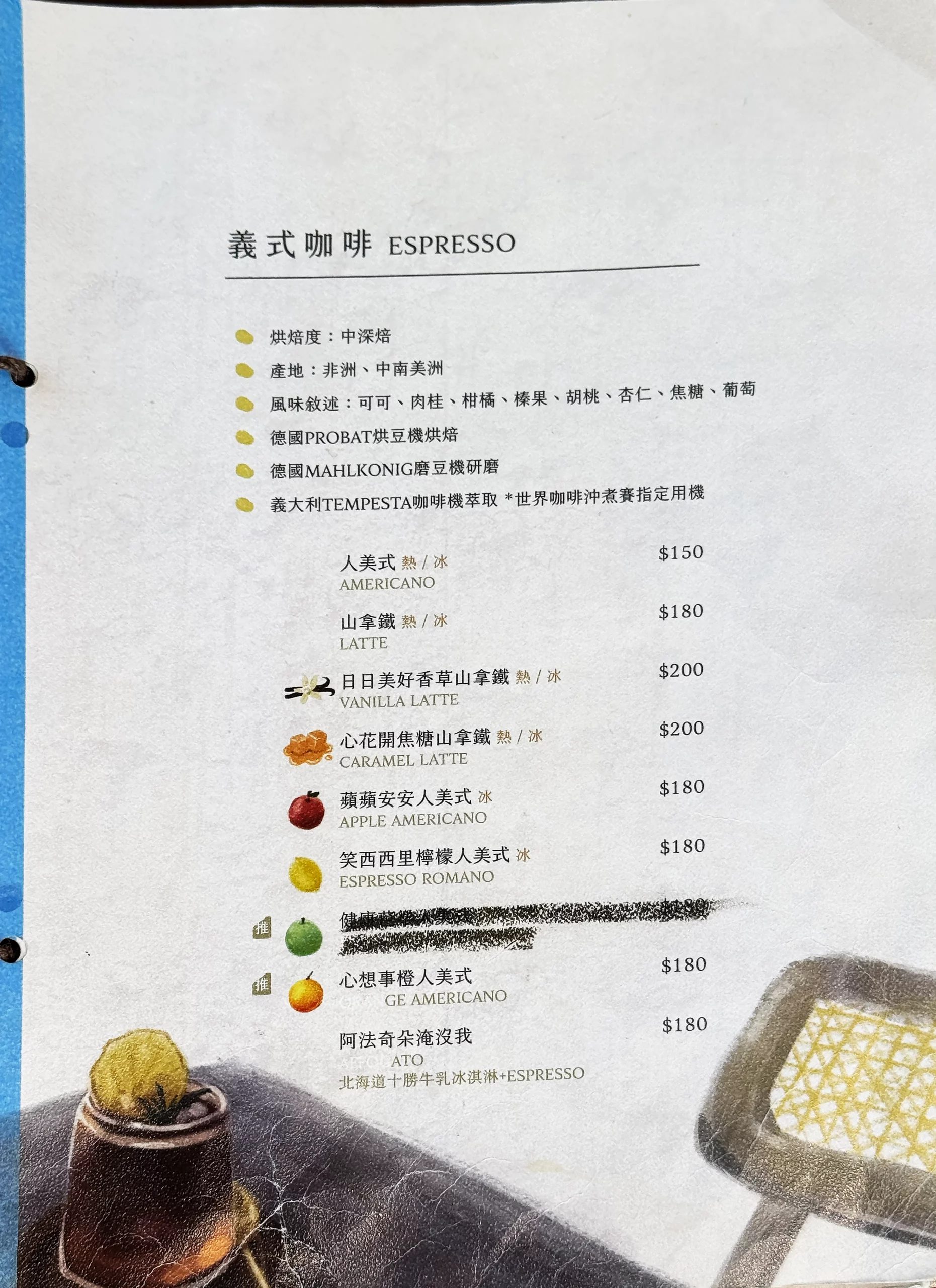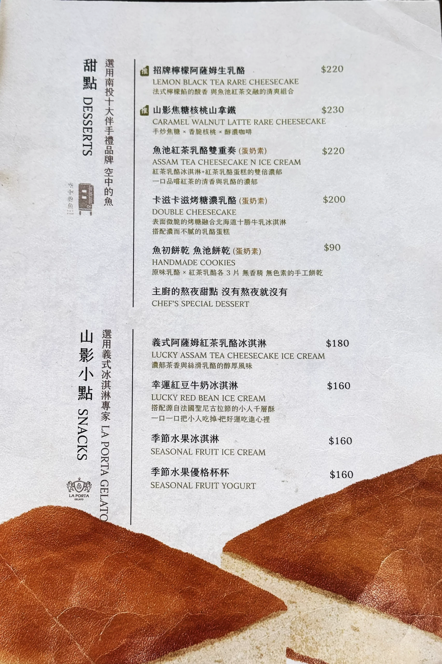 ▼「山影人宅」的飲品價格大多位在150元~250元之間,餐點的部分除了有甜點以外還有輕食可以選擇,甜點除了常駐的品項,也會有當日限定的甜點,每次去都可能發現驚喜喔!