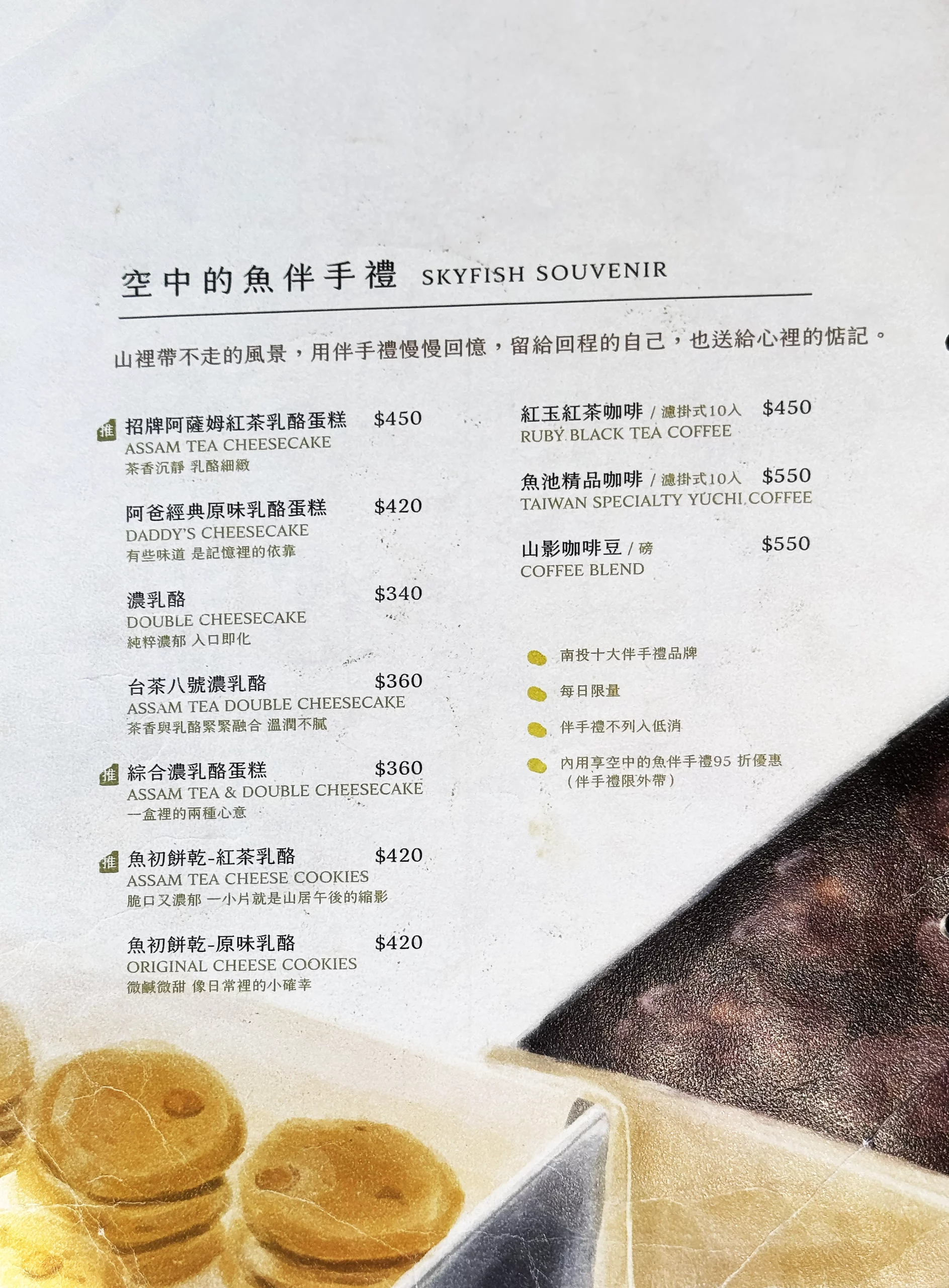 「山影人宅」是南投日月潭知名的乳酪蛋糕店空中的魚二店,主要是以咖啡廳為主,提供咖啡、茶飲、甜點和輕食,也可以在這邊購買到空中的魚推出的各式伴手禮。
