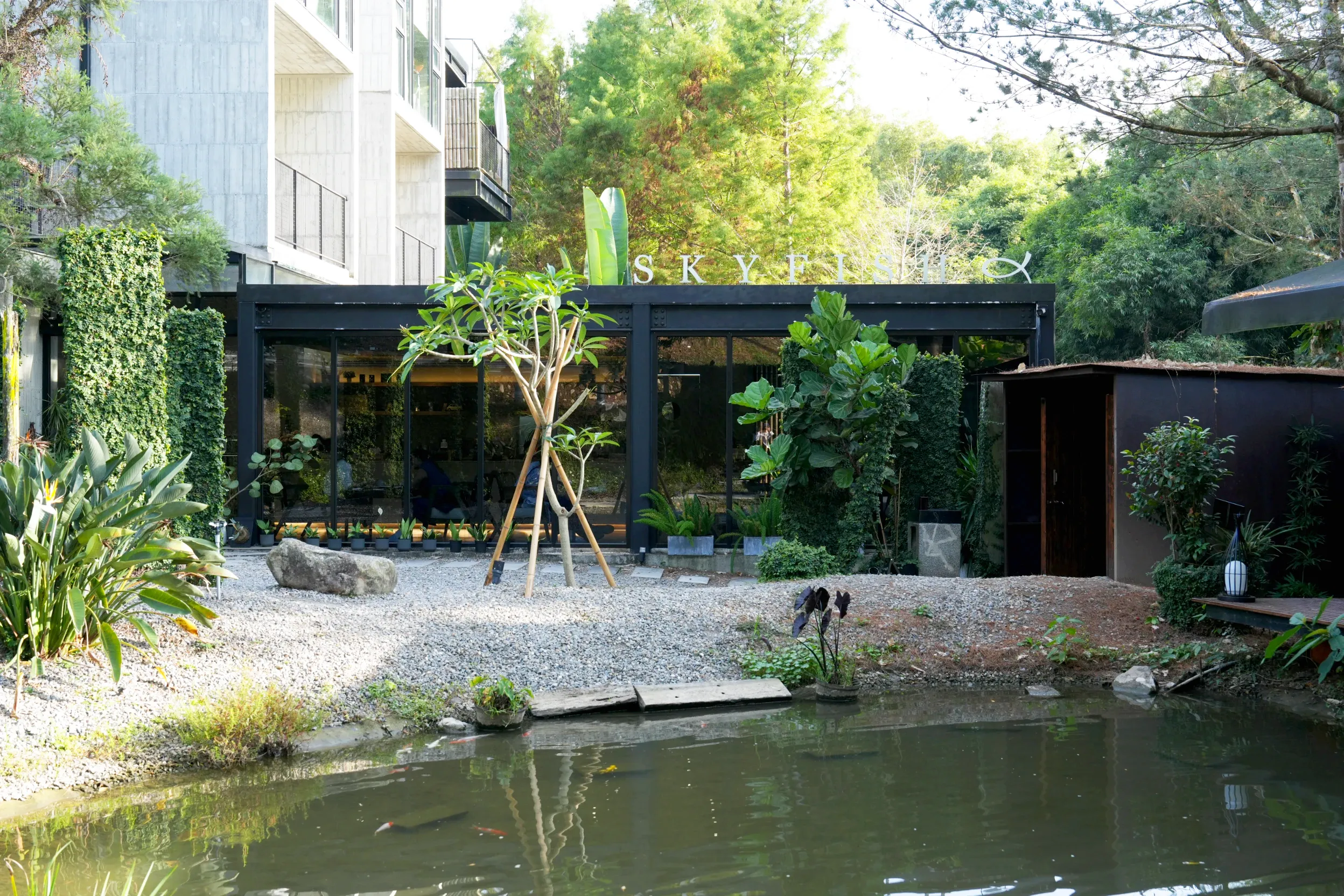 ▼ 「山影人宅」不單單僅是一間咖啡廳,還有戶外的水池區,除了來喝咖啡吃甜點以外,也可以在戶外散散步,享受山間靜謐的氛圍。