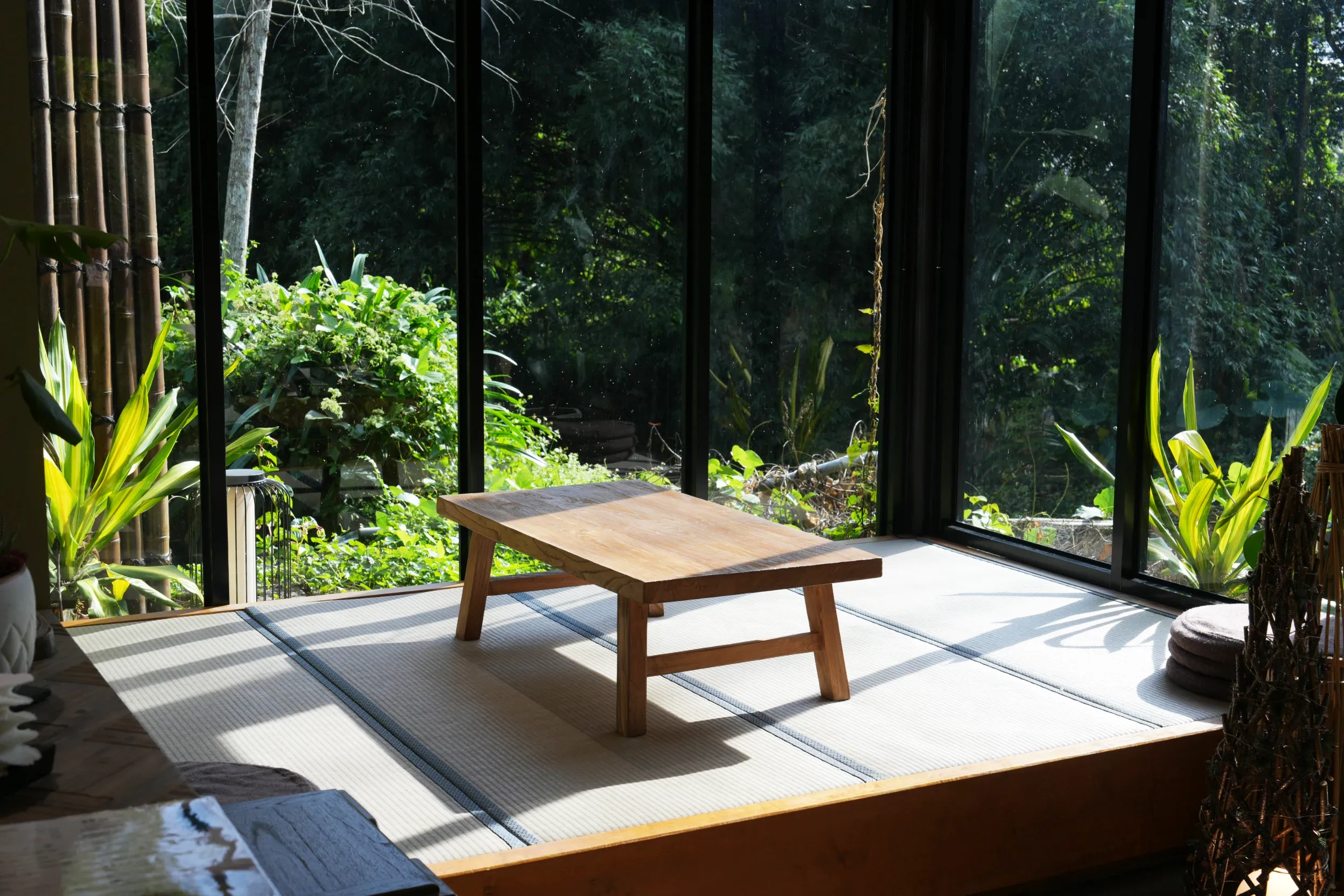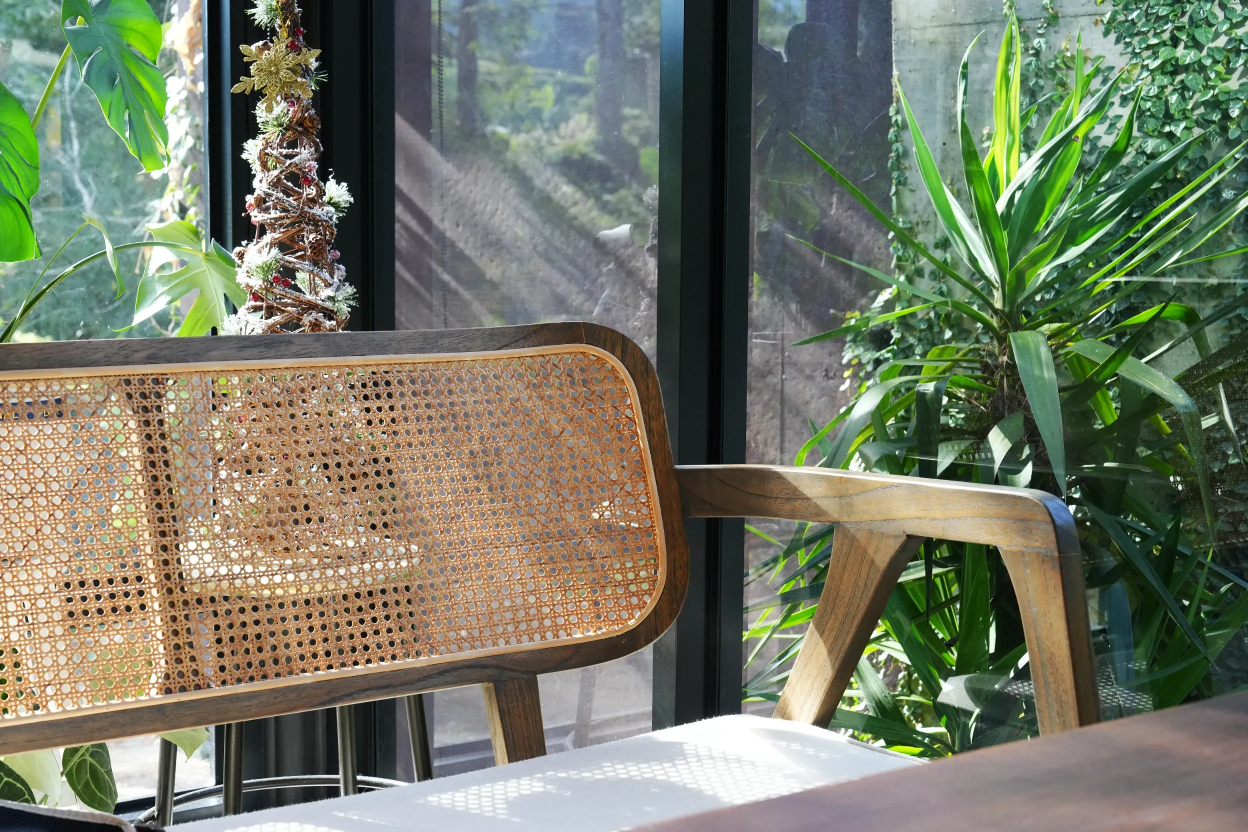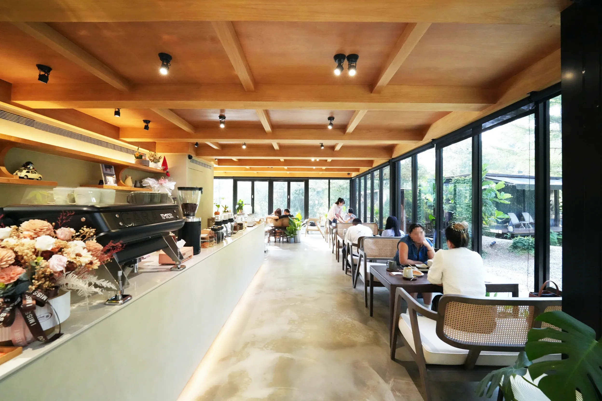 ▼ 店內以日系風格裝潢,除了有藤編座位區以外,還有很特別的榻榻米區,咖啡廳的玻璃屋設計可以在喝下午茶的同時感受午後暖陽和欣賞山林景色。