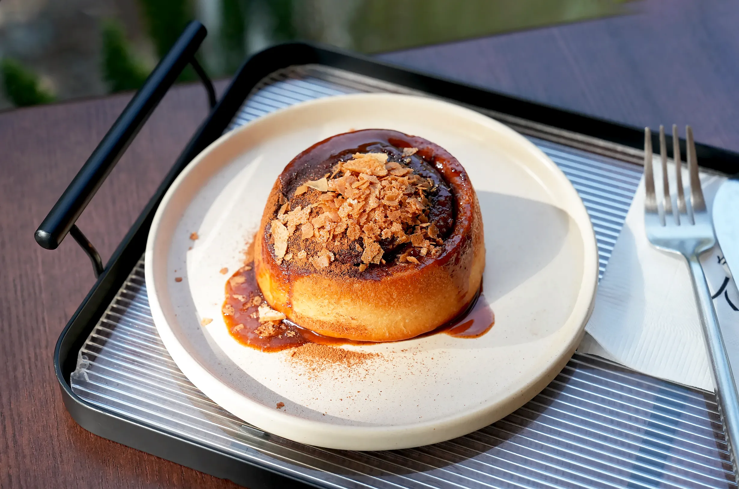 外酥內軟非常好吃的肉桂捲,肉桂味很濃郁,焦糖醬是苦甜口味的,加上海鹽的鹹味中和,鹹鹹甜甜的口味會讓人忍不住一口接一口,肉桂捲是普通大小,作為下午茶搭配飲品份量很剛好!