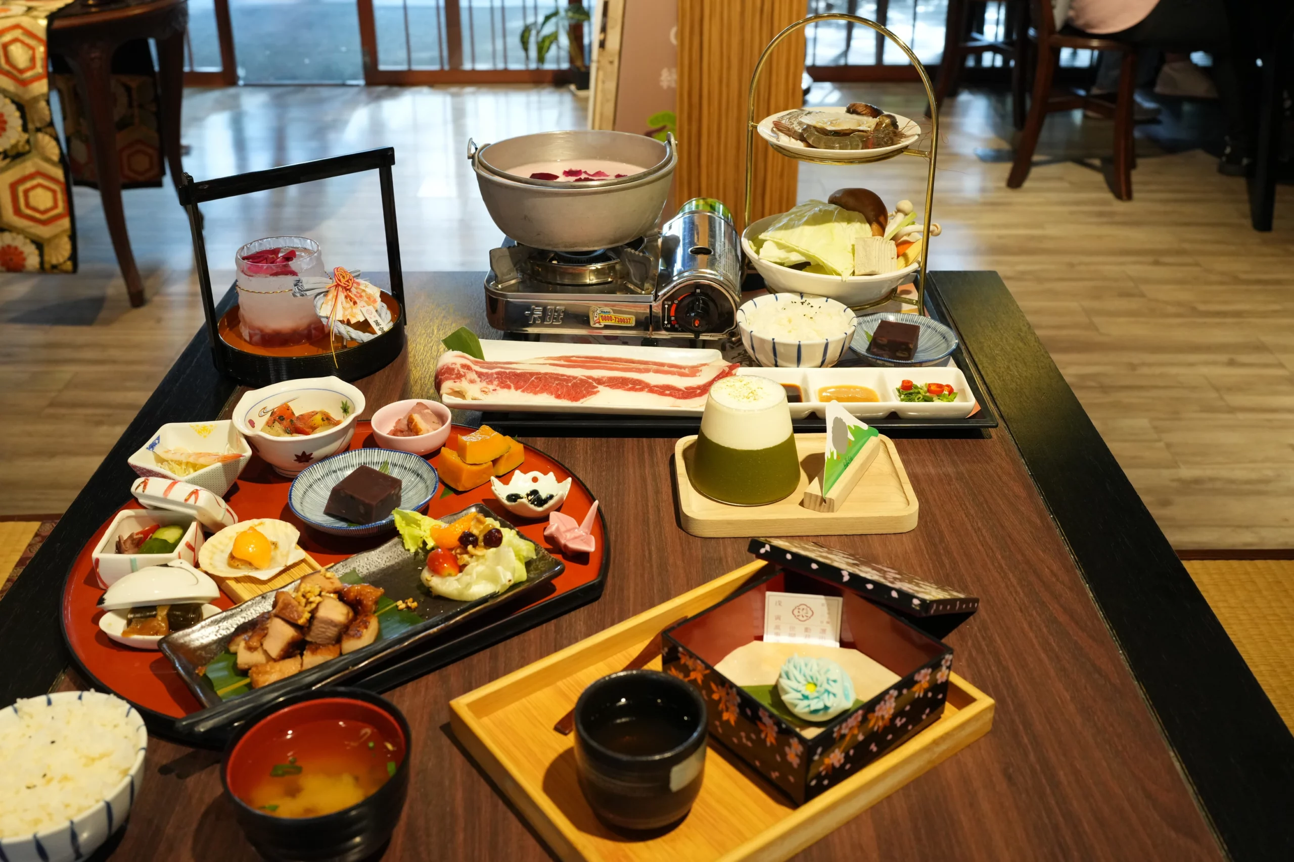 而在餐點部分,店家提供了非常多樣化的選擇,像是火鍋、日式定食、占卜和菓子,讓客人在用餐時充滿著儀式感。此外,「鳥居喫茶食堂」還有提供浴衣體驗,只要大人每小時200元、小孩每小時150元的平價費用,甚至還貼心提供寵物浴衣,讓毛孩也能一起體驗和拍照。