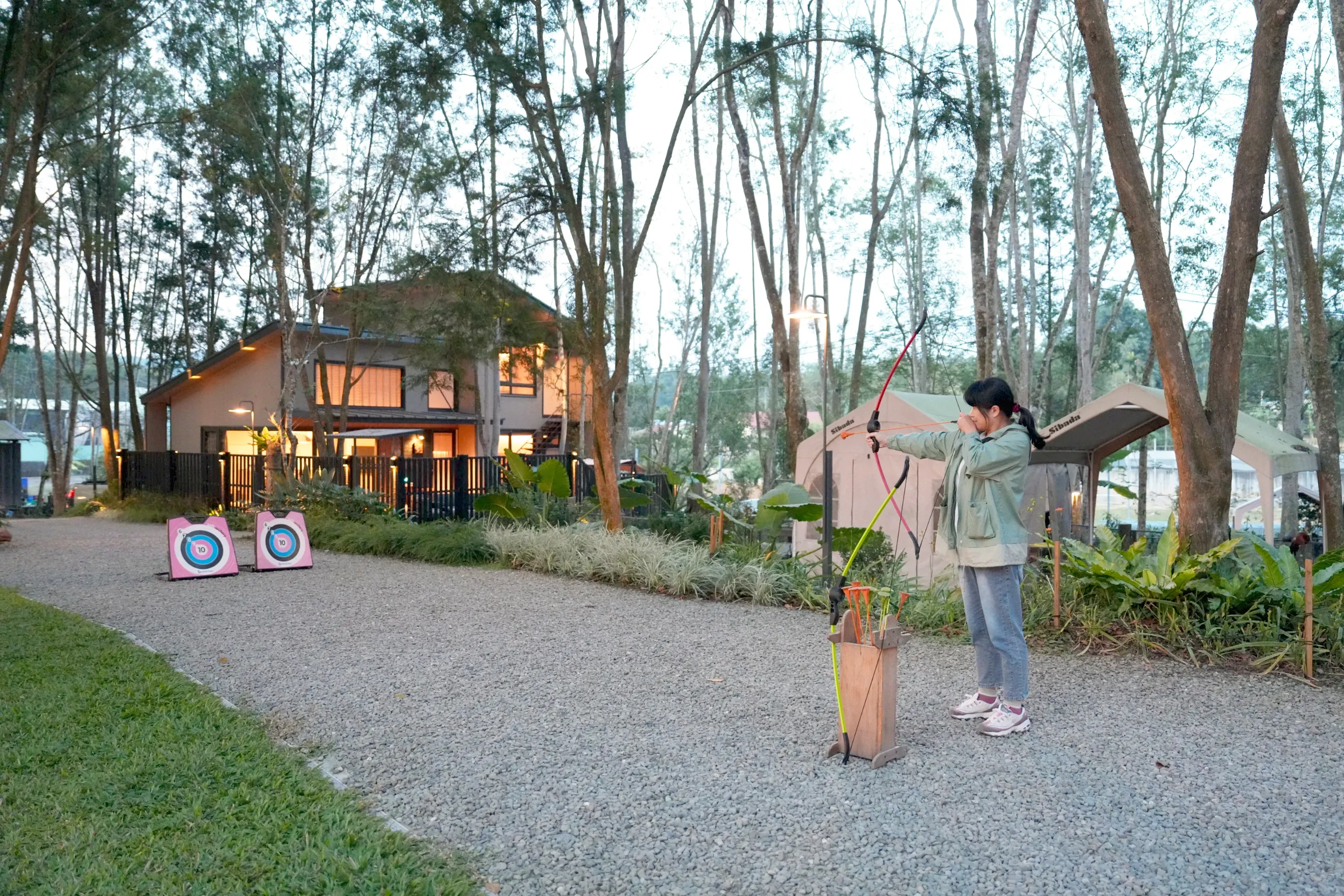 ▼園區內也有很多適合親朋好友一起玩的運動設備可以租借,像是羽毛球、射箭、丟沙包等,想要動一動或是組隊PK的話,都可以來挑戰一下~