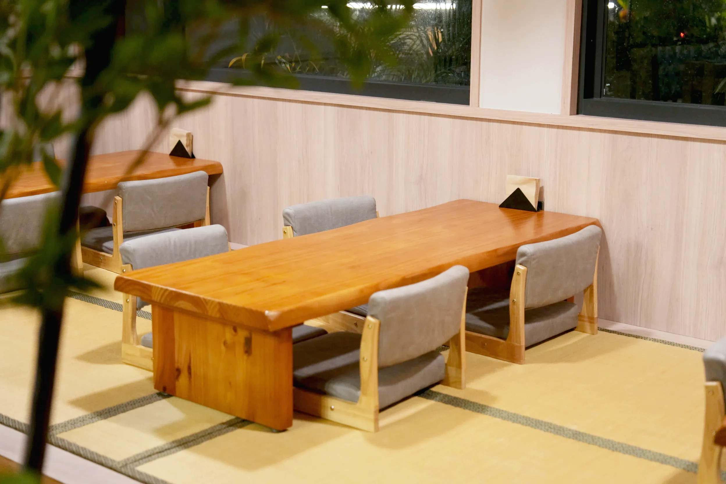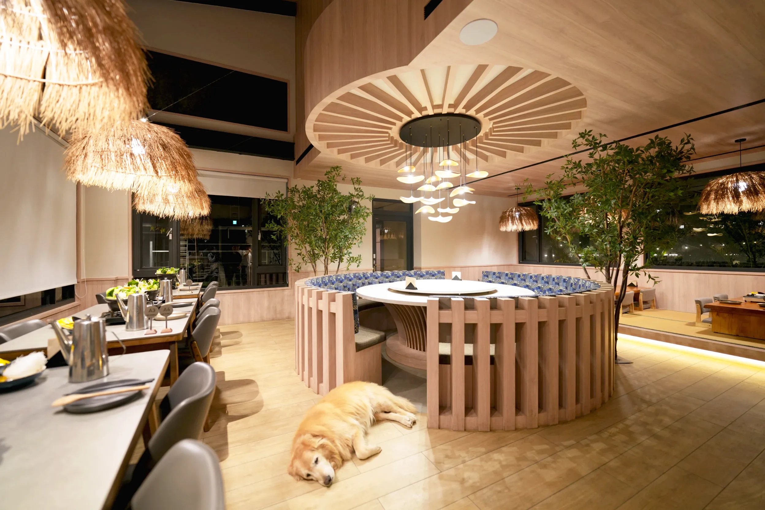▼一泊三食的晚餐和早餐都會在園區內的餐廳供應,除了有一般的四人座位以外,也有日式的榻榻米區域和適合大家庭的圓桌,有機會還能獲得可愛店狗陪同用餐的特殊招待XD