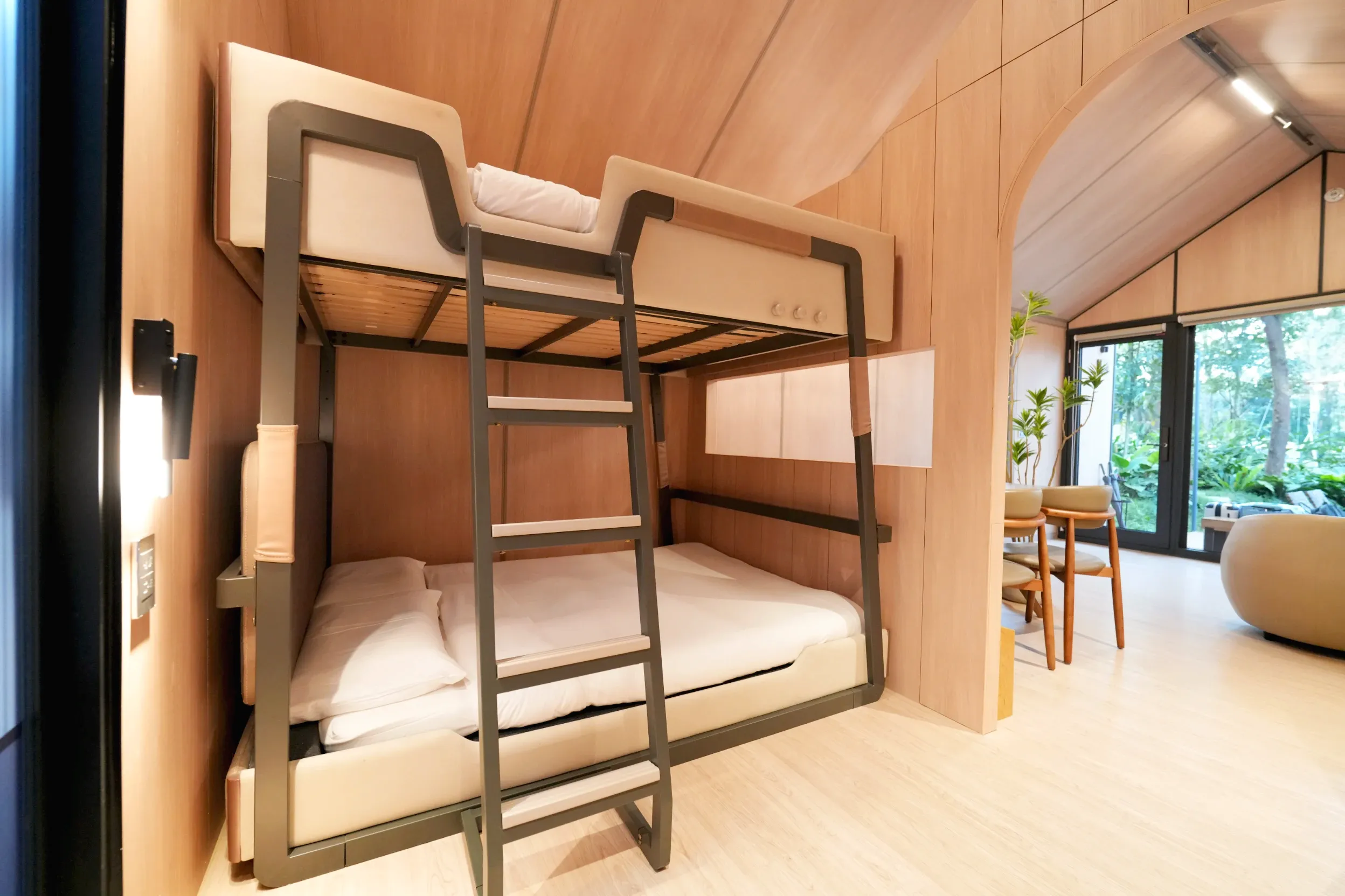 ▼房內主要分為沙發區、餐桌區和上下鋪的區域,當天我和朋友只有兩人入住,所以空間非常綽綽有餘,不過如果是住滿4人或是加到五個人的話,可能會覺得有點小小壅擠。