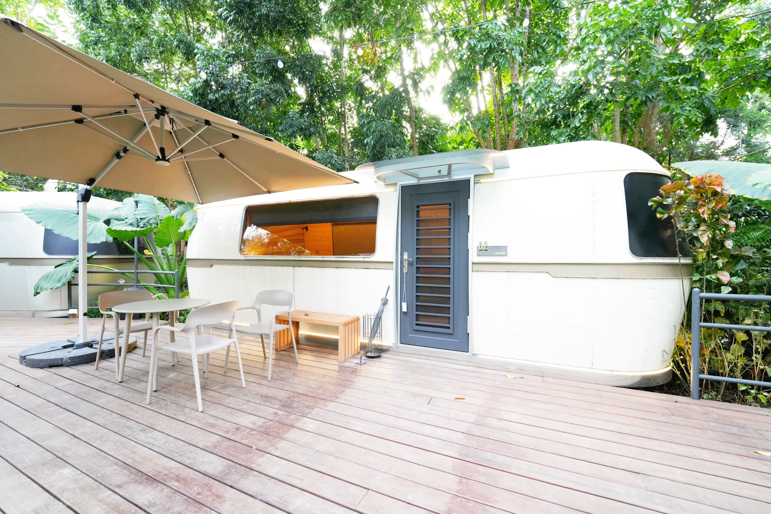 ▼「TOP露營車」一次可以兩人入住,最多可再加一床,戶外也有一個獨立的3人小型座位區,當天很幸運的是隔壁都沒有住人,所以整體蠻安靜的~