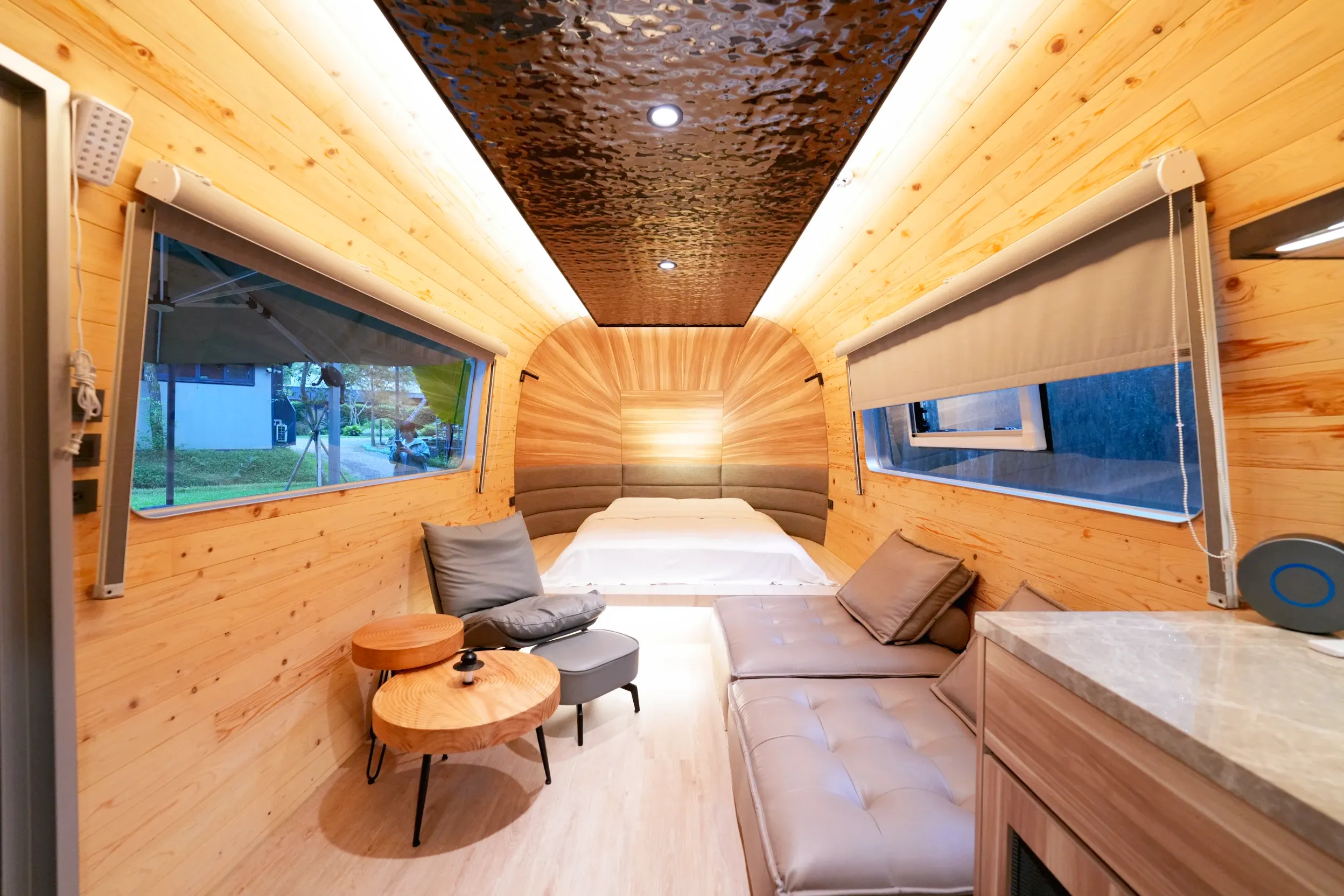 ▼露營車內主要是一張雙人床和一個沙發躺椅區的空間,空間算是大小適中,兩人入住也還有位置可以放行李。