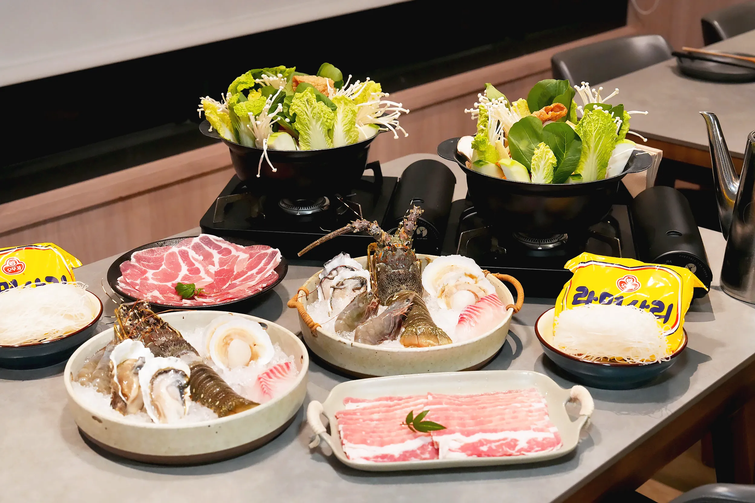 ▼晚餐時間有17:30、19:00的時段可以選擇,用餐時間為90分鐘,餐點是非常澎湃的海陸龍蝦火鍋,不過要注意的是,除了六人房是開兩鍋以外,其他房型都是每房一鍋喔!