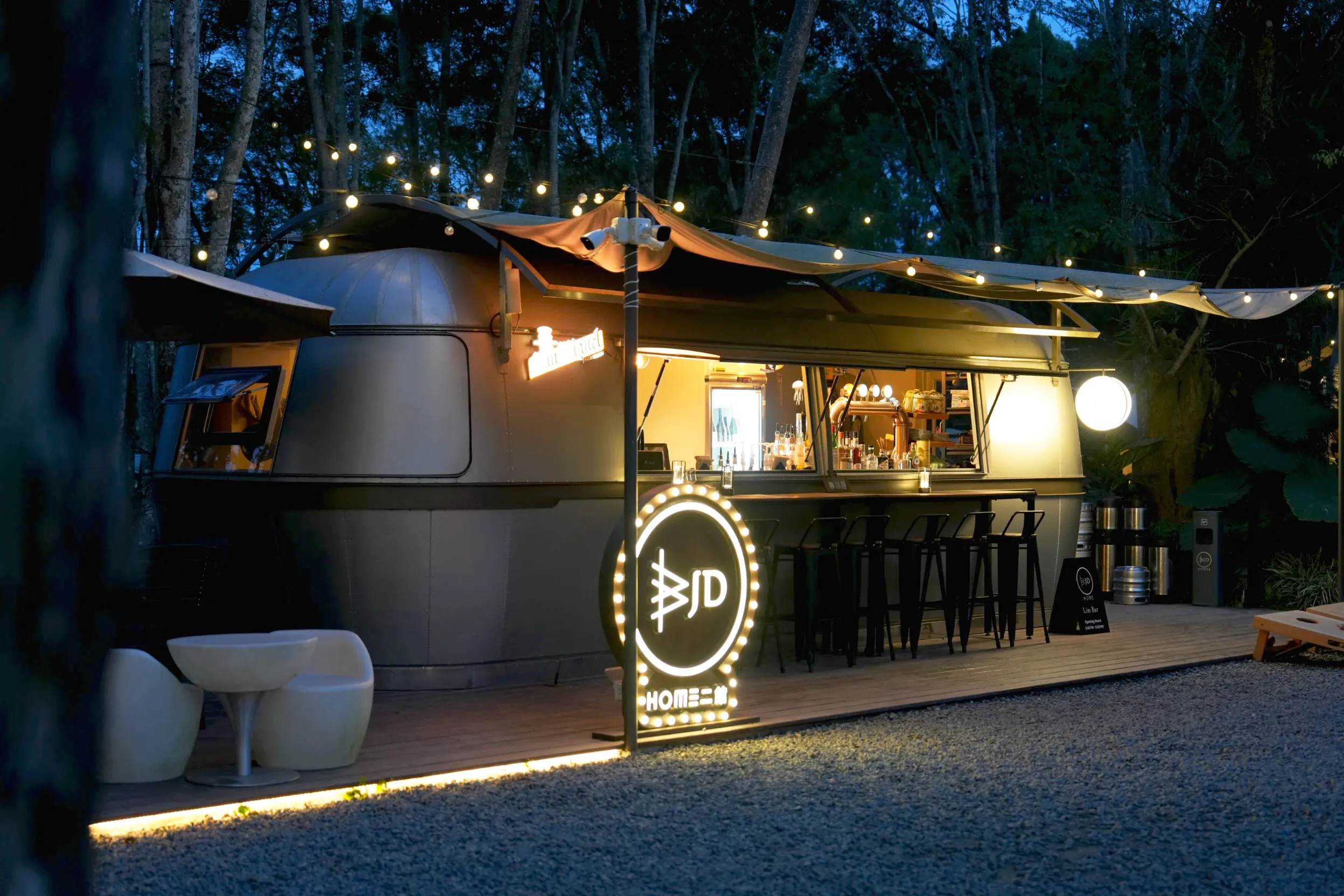 ▼在「3JD HOME 二館」真的完全不用擔心餓肚子,晚餐過後,可以來到草皮旁的小餐車領取棉花糖去營火烤,小餐車的營業時間從15:00~22:00,棉花糖是無限量供應的喔!