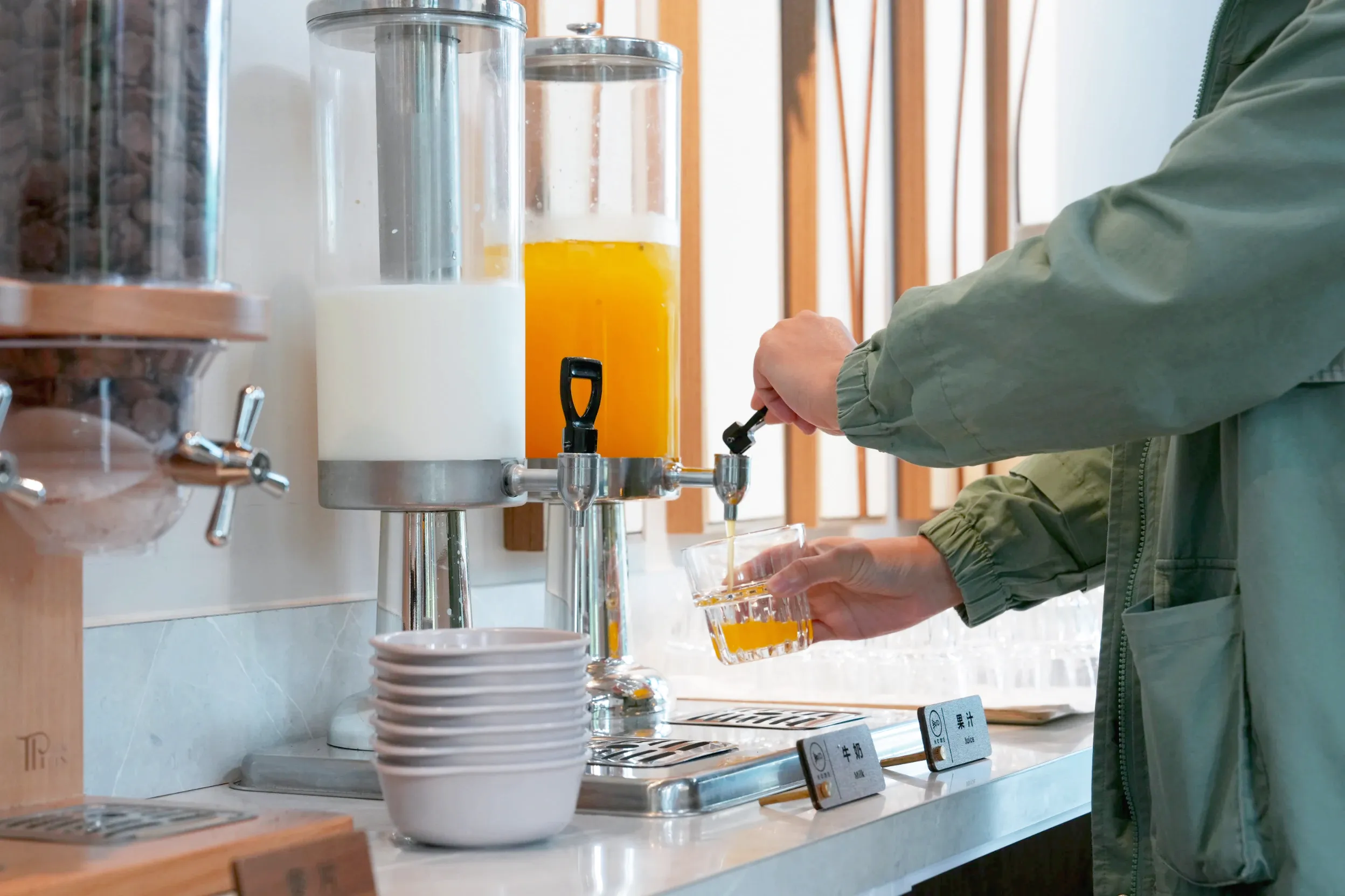 ▼飲料吧還有提供牛奶、果汁、鮮奶茶、紅茶等飲料的無限暢飲,也有玉米脆片跟熱粥,選擇很豐富~