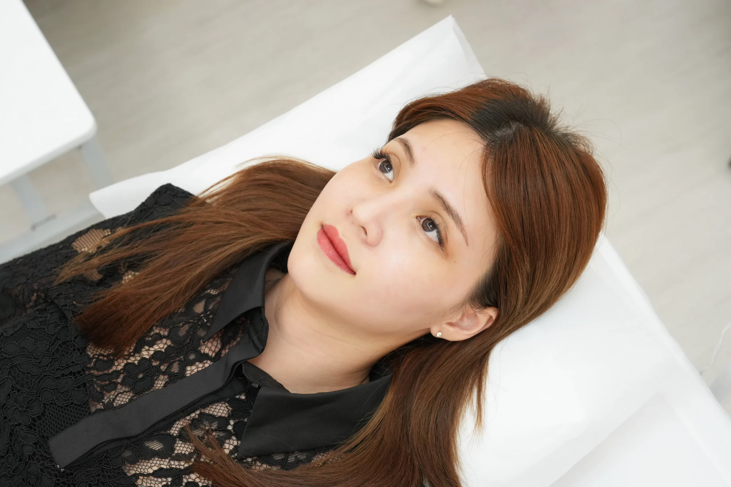 ▼接著就會帶領你前往後方的施作區,首先紋繡師會用手機拍照,比對和測量原本嘴唇在五官上的比例,並根據每個人不同的五官條件與唇型,和客人討論想要施作的唇色,整個過程非常仔細,讓人一開始就感受到滿滿的專業與用心。