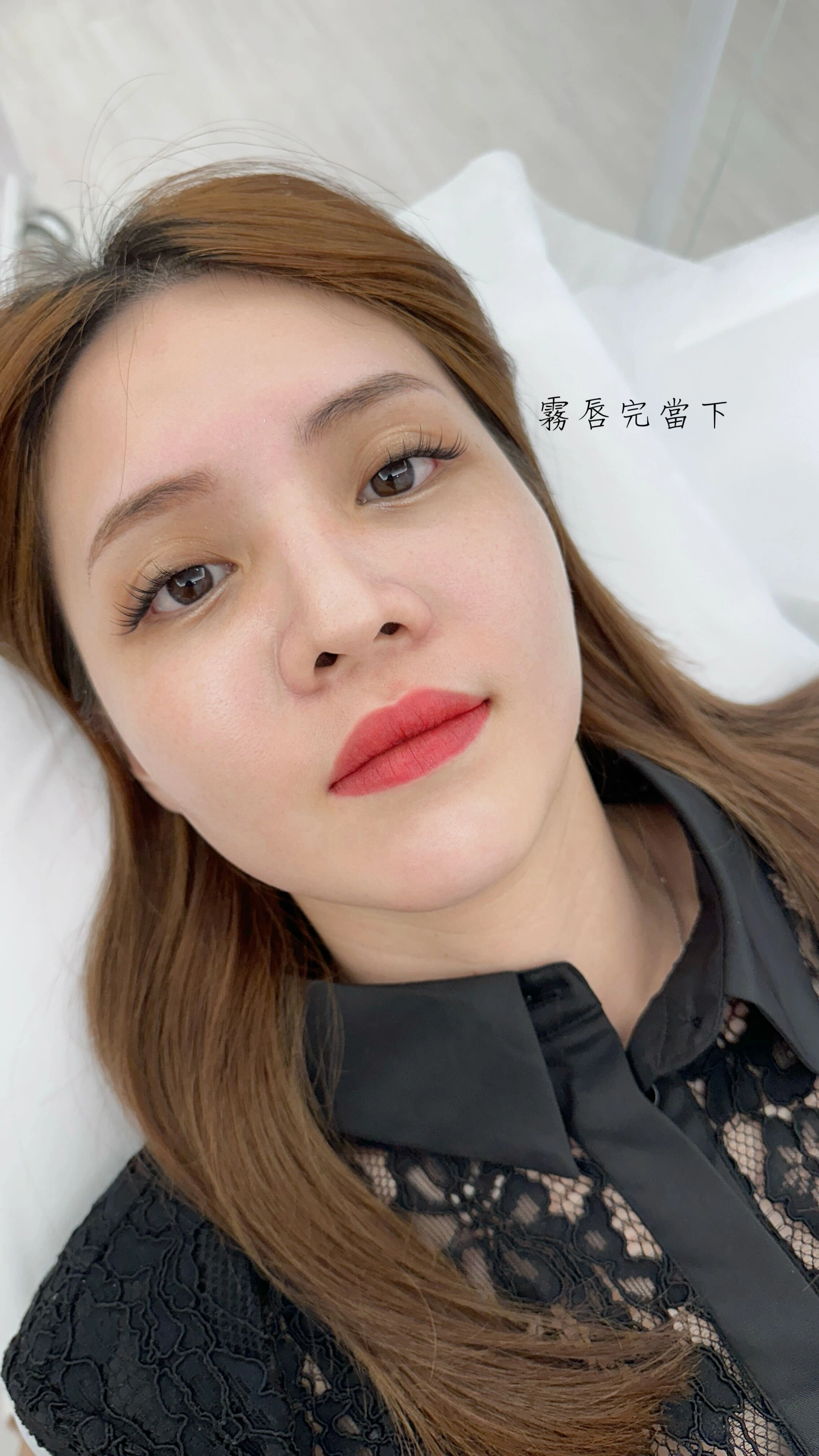 ▼療程結束後,紋繡師會再次用手機拍照,比對嘴唇在五官上的比例,細心確認整體是否對稱,朋友說這次霧完的效果真的讓人非常滿意,不僅修飾了原本唇部暗沉、唇色不均的狀況,整體氣色也變得更加紅潤,看起來就像天生帶妝一樣自然又有神!