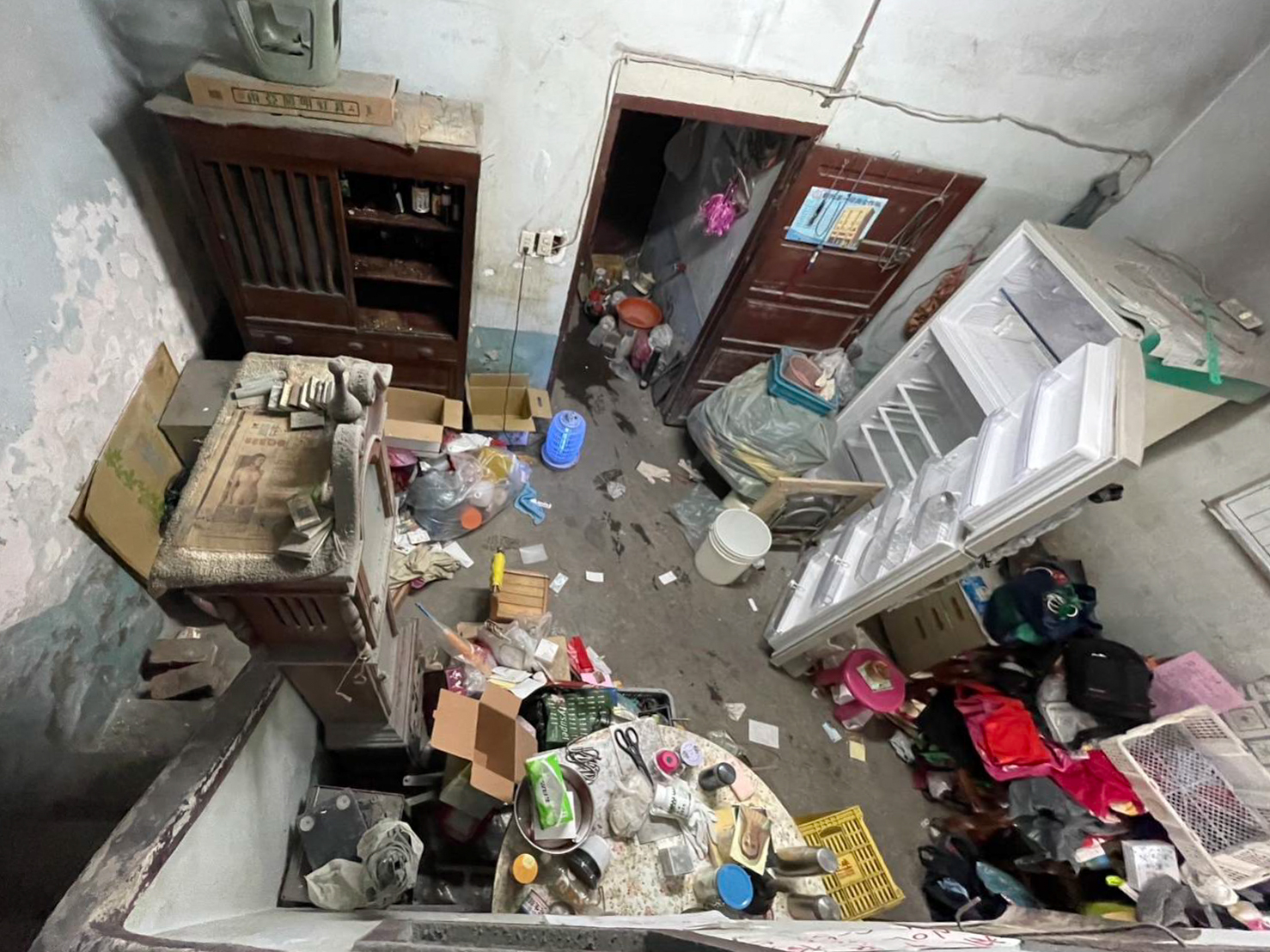 ▼接著來看看2樓的狀況,看完1樓再上來,相信大家都會覺得2樓情況好很多,至少雜物沒有堆到跟小山一樣高,左圖、中圖都是清運前的樣子,右圖則是清運後,終於能重新看到地板了,整個空間感明顯變大很多。