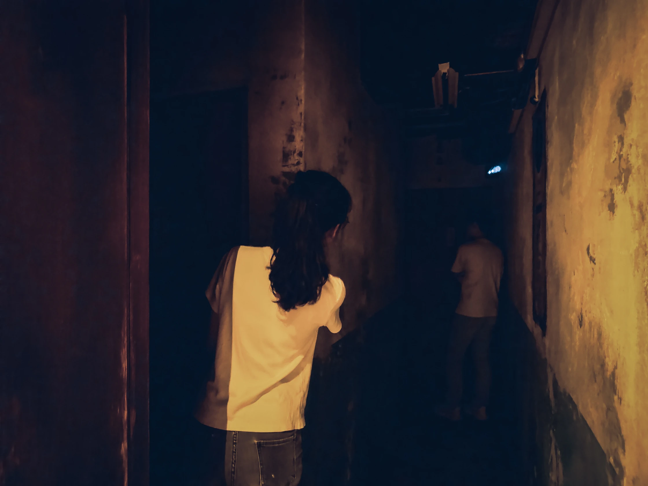 通常玩過有NPC的恐怖主題都知道,單線任務最容易遭遇到黑追了,但通常敢去的人也不至於到那麼怕,所以這位勇士就很能體驗恐怖密室的樂趣,但我覺得查寢的單線也沒有到那麼硬,其實幾個人一起去壯膽也行。