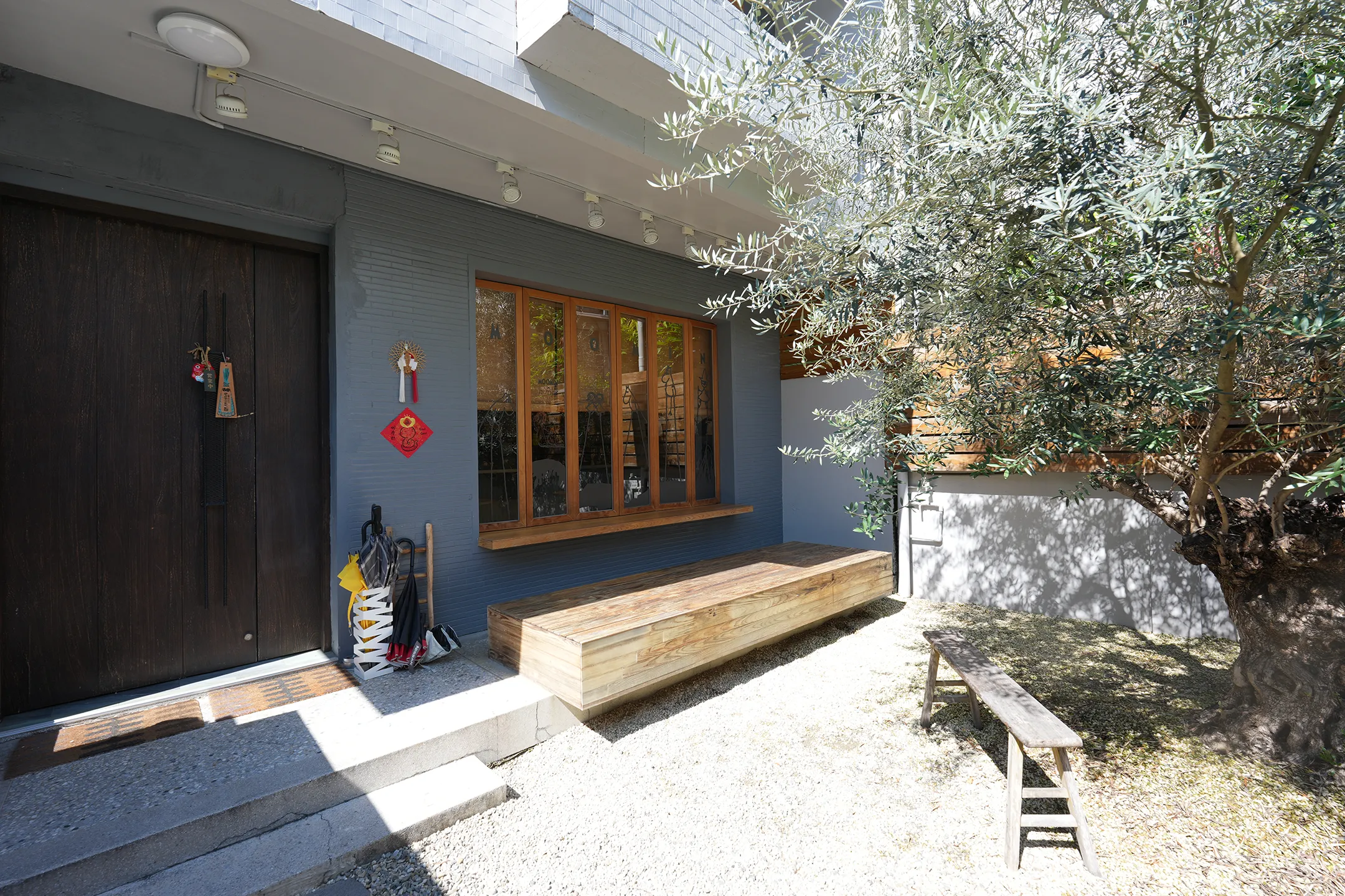 店內設計融合了京都Wabi-Sabi的日式風格,營造出寧靜雅致的用餐氛圍。京都侘寂風的院子很有意境美,讓人彷彿置身於日本傳統庭園之中。雖然主要以外帶為主,但店家也貼心提供窗外座位區,讓顧客能夠坐下來細細品味這些精緻的生甜甜圈。