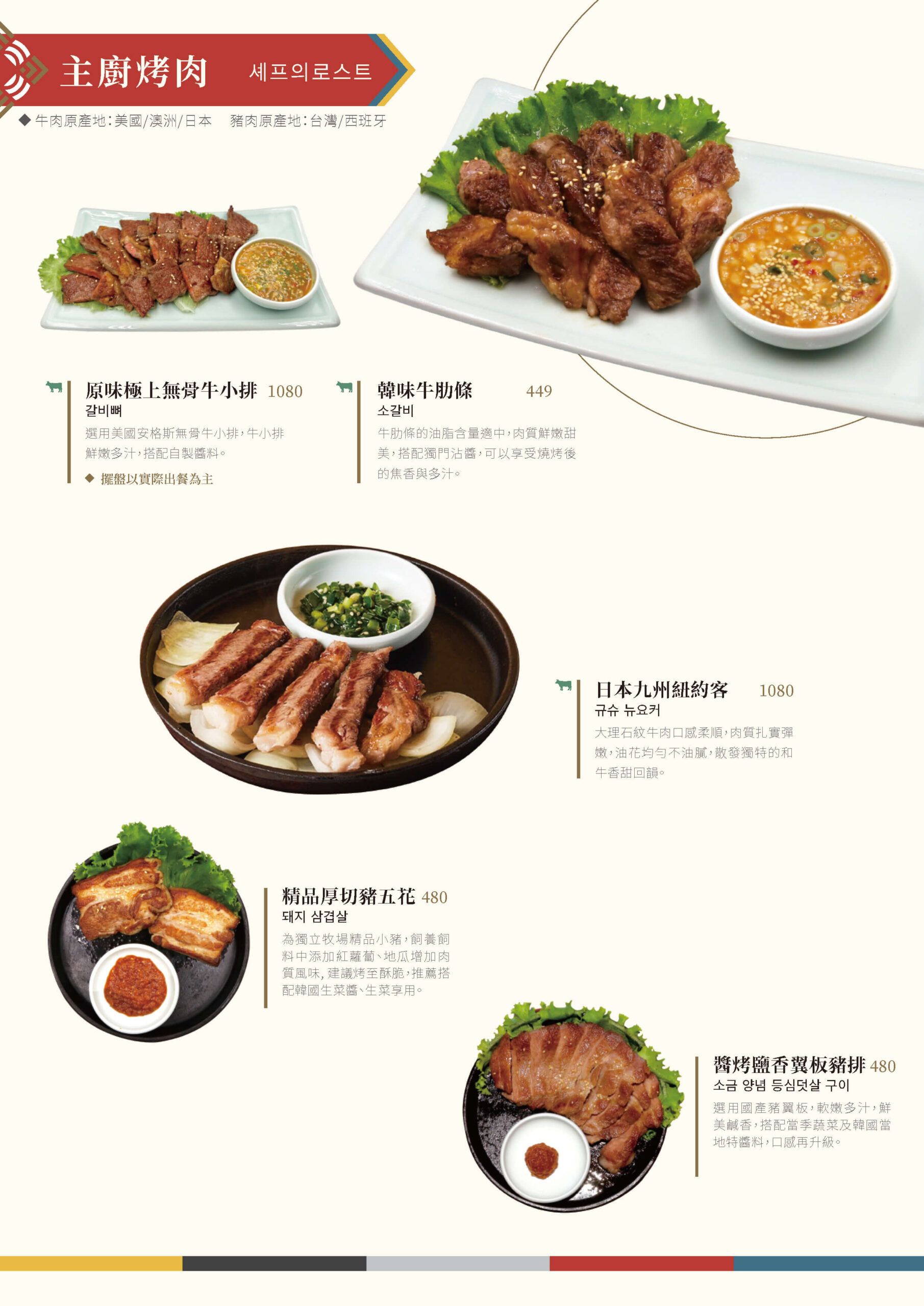 -– 套餐附傳統韓式辛奇(泡菜)、蔥拌沙拉、韓式小菜、生菜、麥茶