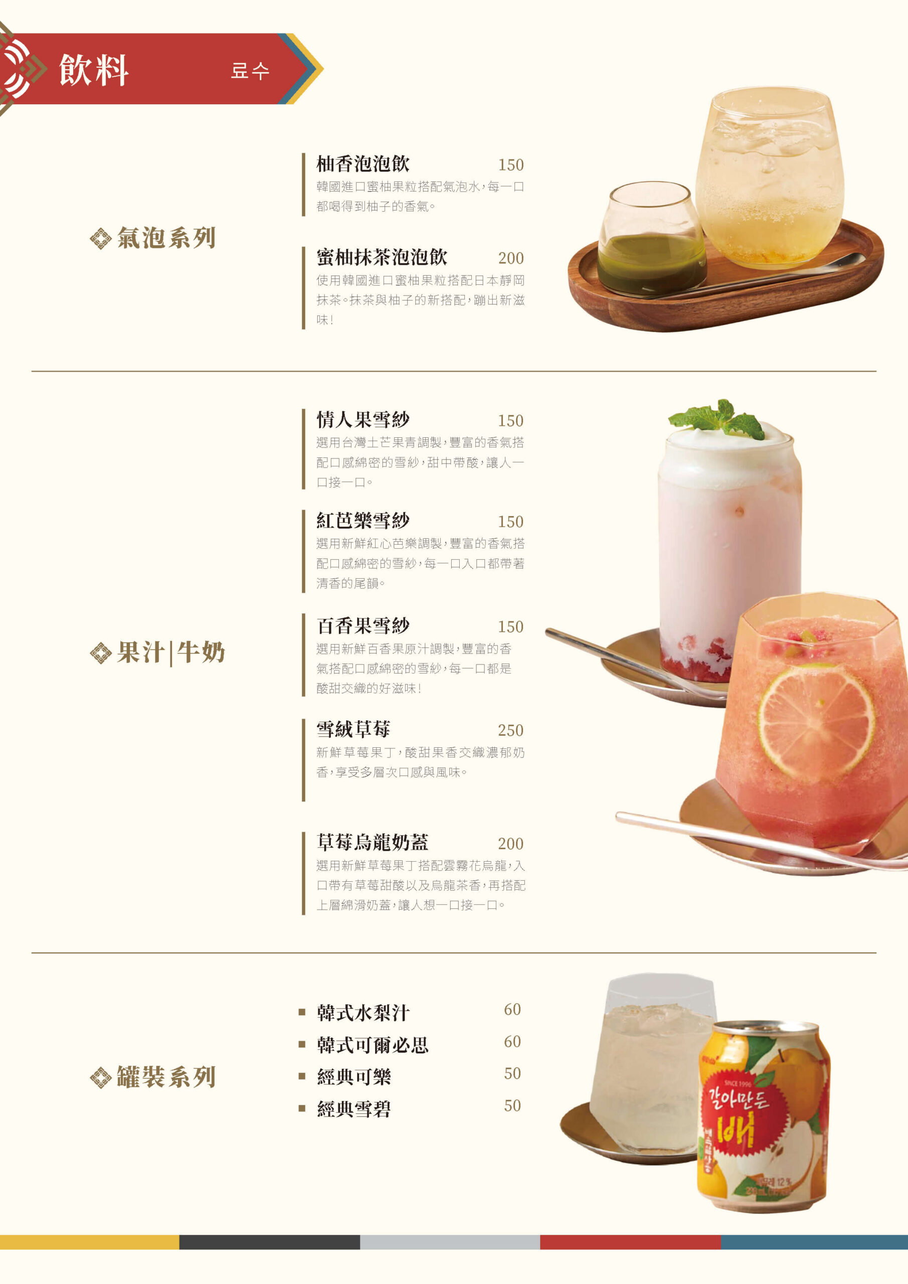 ▼「金韓食」品項將不定期調整,菜單以現場為主,下方圖片可點圖放大觀看。