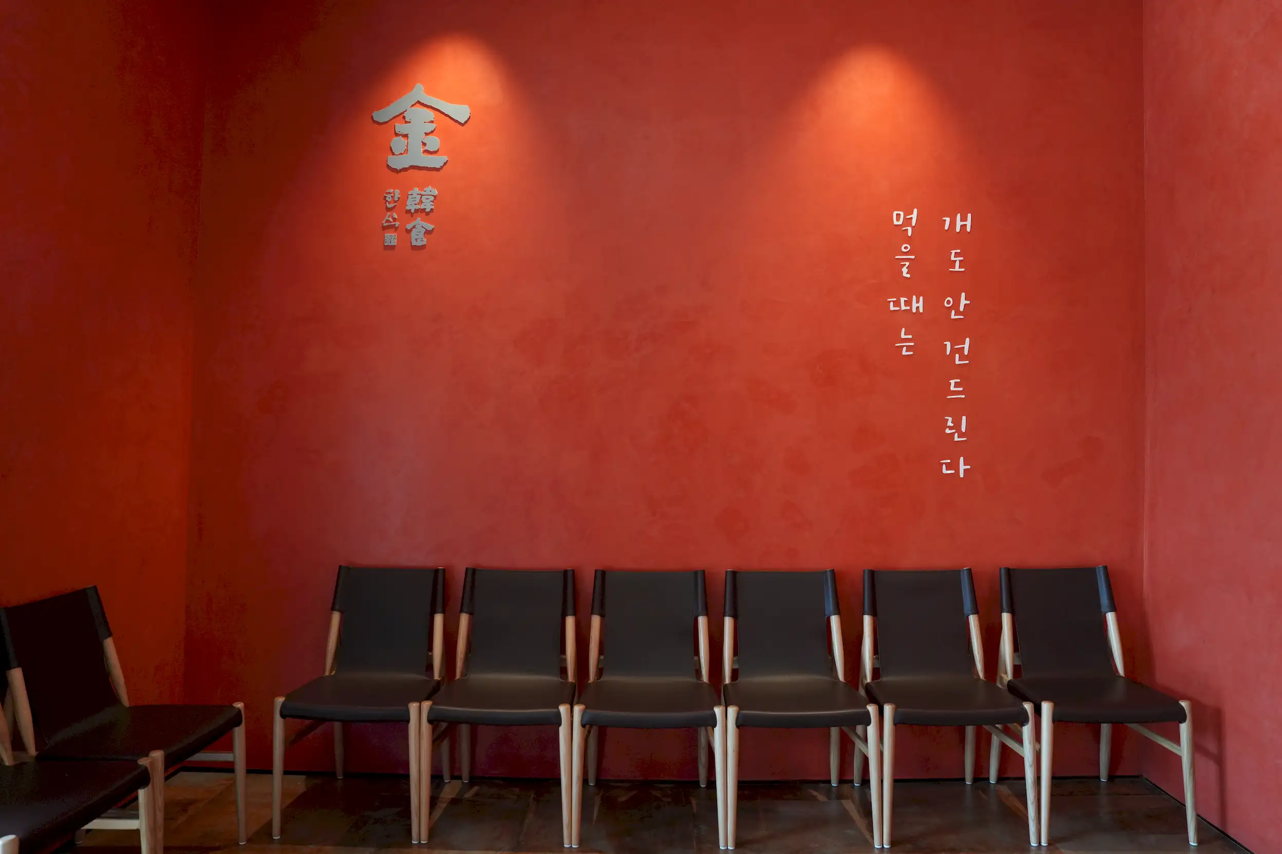 「金韓食」座落於台中台灣大道,不僅鄰近市政府捷運站,店面旁還有停車場,交通機能佳。建築外觀以獨特的「暗朱紅」方形格柵為基調,沉穩而大氣的色澤由外而內延伸至室內空間,營造出極具一致性的視覺美感,在這種內斂且尊貴的氛圍下用餐,無論是溫馨的家人聚會、好友談心,或是浪漫的情侶約會都非常合適。