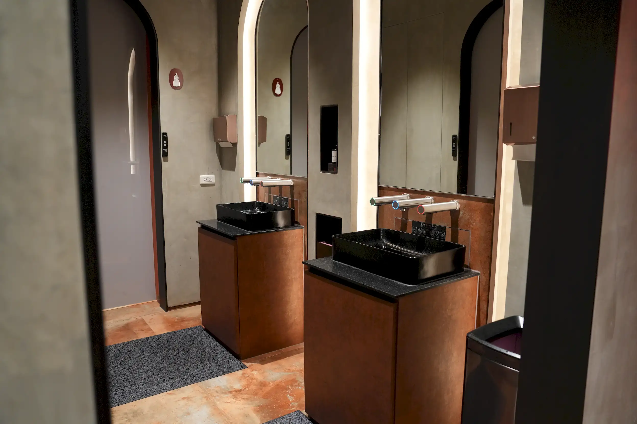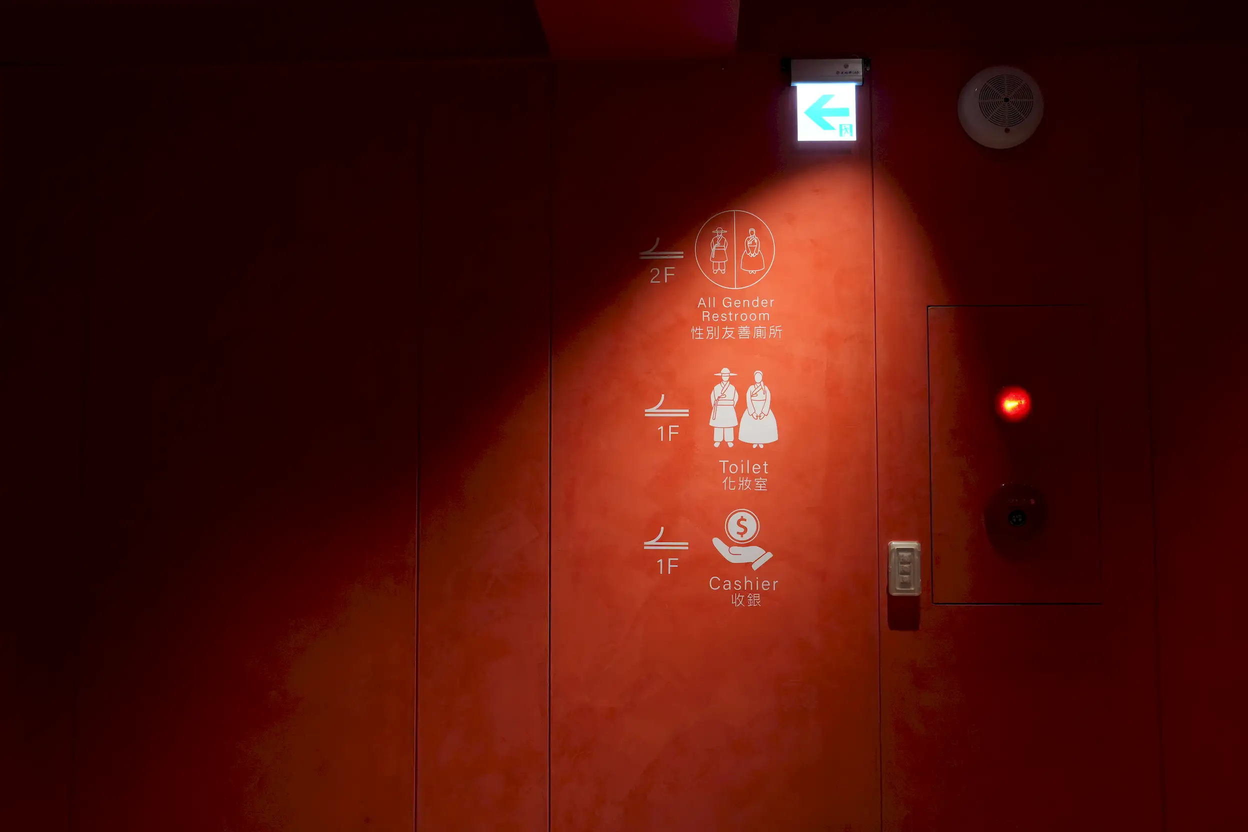 ▼洗手間也有個很有趣的小細節,指標圖示並非一般的男女符號,而是穿上傳統韓服的可愛圖標,讓人會心一笑,而且內部設計也很用心,仿清水模牆面+間接照明+大面化妝鏡,還有三個簡約又充滿科技感的水龍頭,讓我在用餐之餘,連去洗手間都有種尊爵不凡的感受。