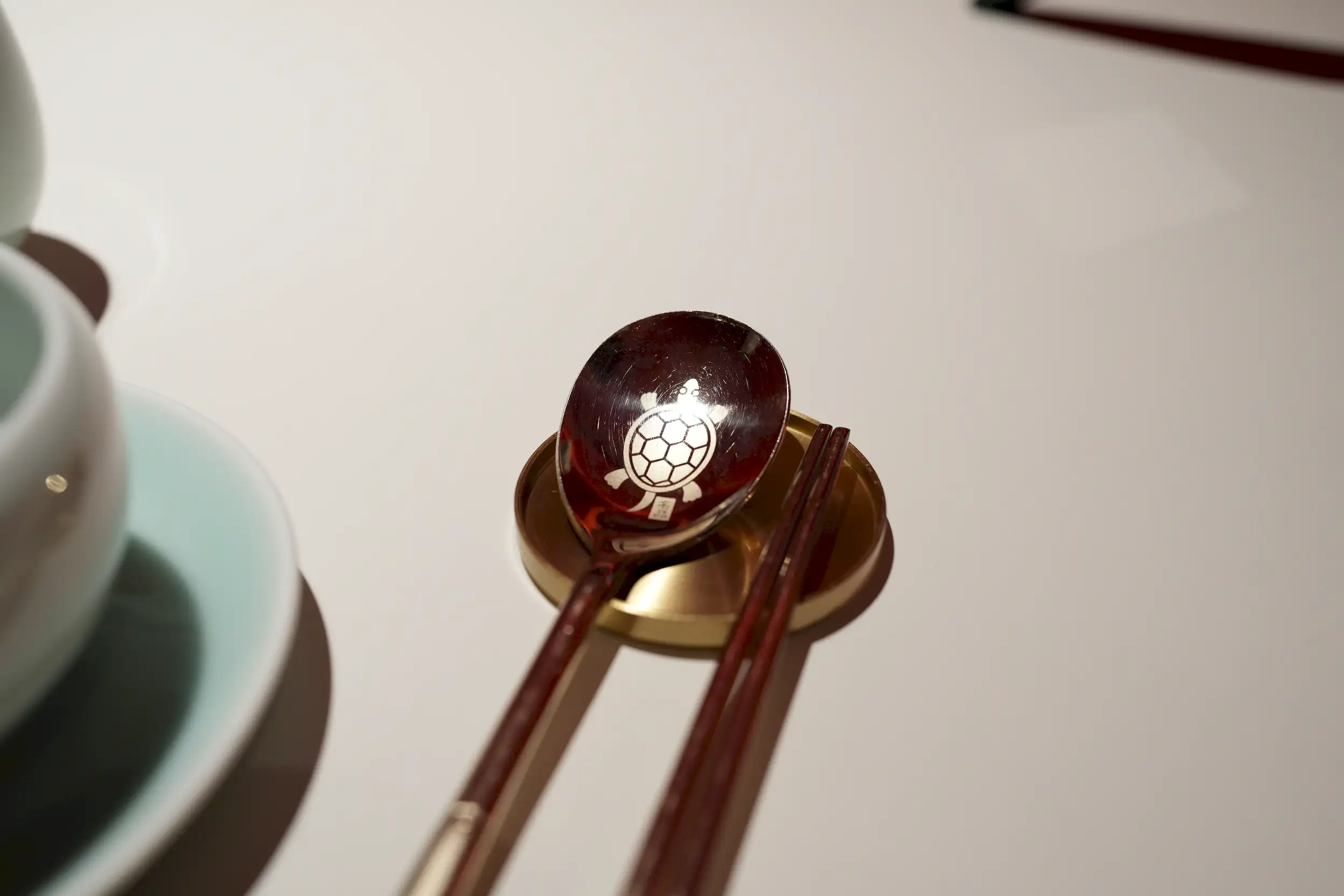 ▼還有個小細節一定要跟大家分享,湯匙上有隻超可愛的小烏龜,我查資料後才知道在韓國民俗文化中,烏龜代表「長壽、穩定」,因此常被刻在餐具上作為祝福,讓用餐多了一份儀式感。此外,店內使用的是韓國扁筷,讓人真的像去韓國用餐一樣,但如果像我一樣不常用這種筷子,可能需要適應一下。