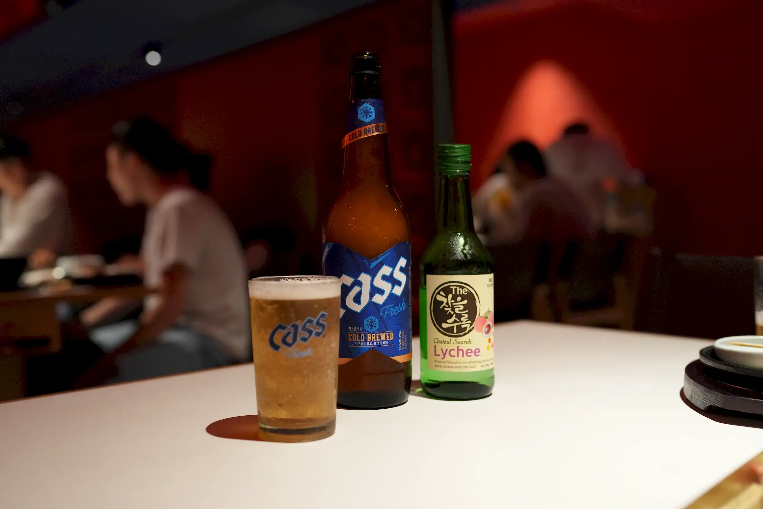 此外,樓梯側邊擺放一整面的韓國燒酒,目光很容易被吸引過去,然後就會想點個燒啤來喝看看,燒啤的影片我放在下方心得分享,真的很酷!