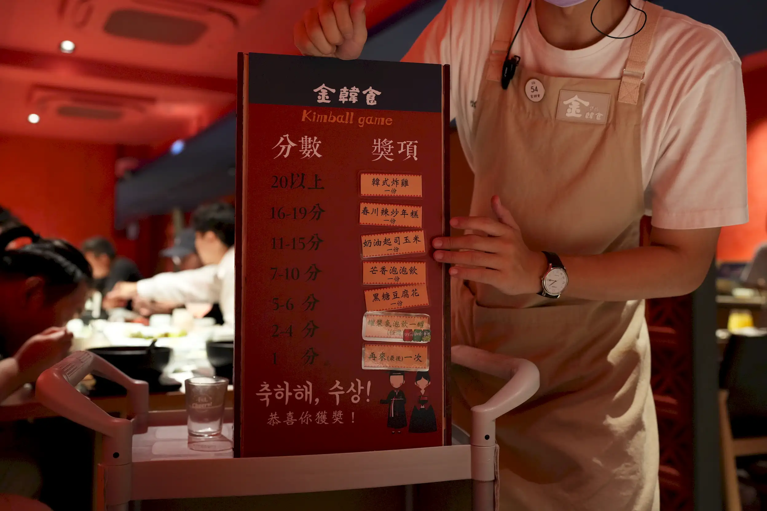 ▼當月壽星店家會準備接彈珠小遊戲,壽星要想辦法接住店家丟下來的彈珠,軌跡真的超難預測,我最後只接到4顆,換了「韓國HAITAI 葡萄果汁」,還蠻有趣的,但要換到20分以上的炸雞,我覺得非常非常困難!