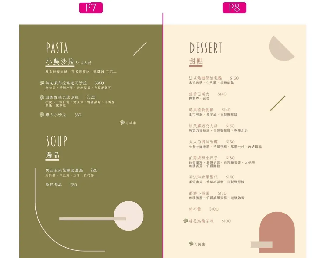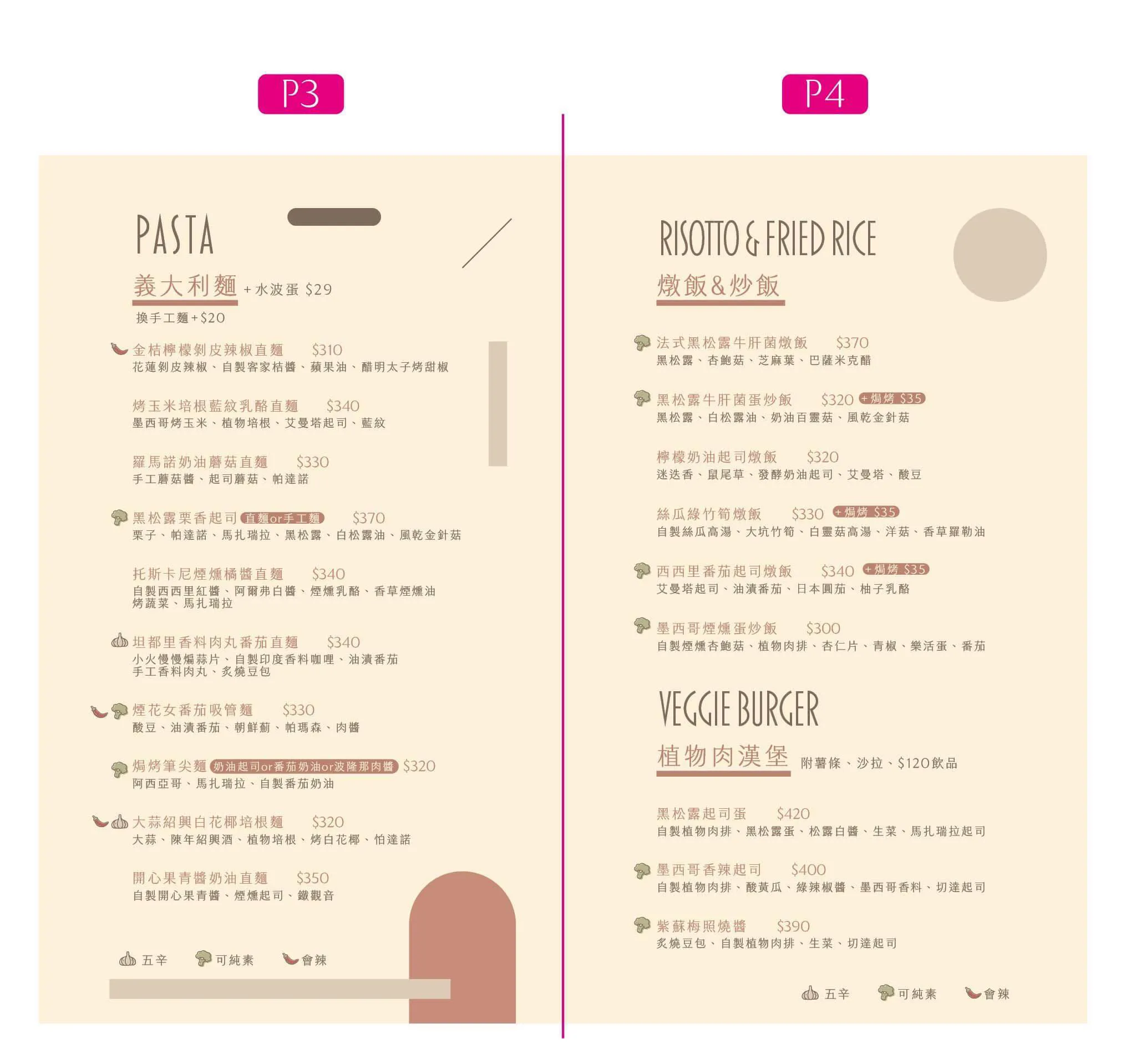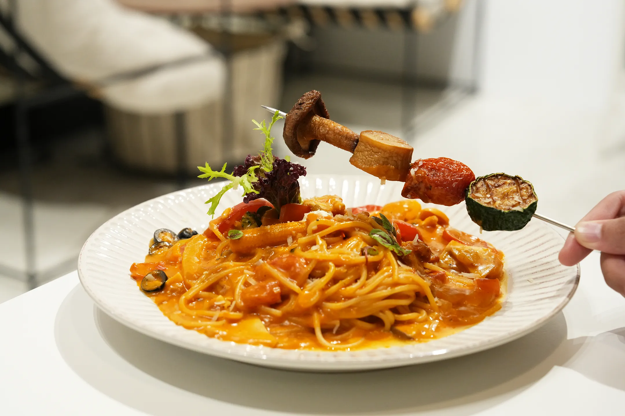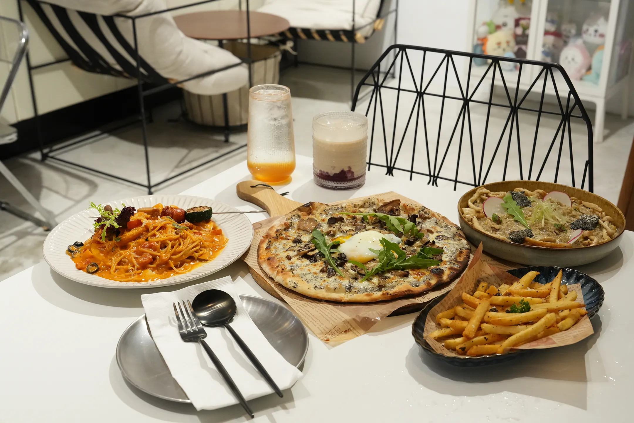 菜單選擇豐富,從義大利麵、燉飯、植物肉漢堡到手工窯烤披薩應有盡有,且提供蛋奶素與全素選項。餐廳堅持現點現做、不使用半成品。