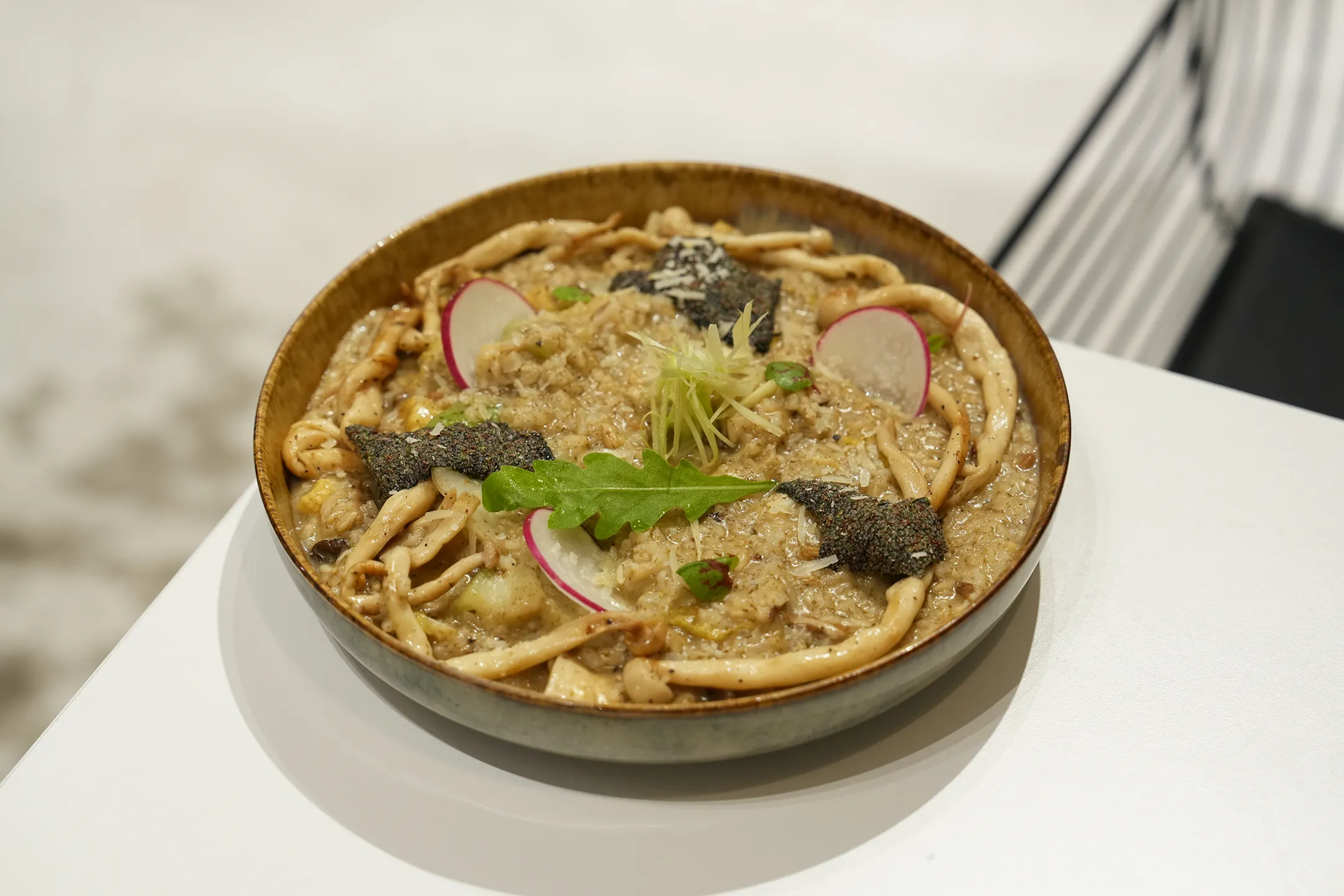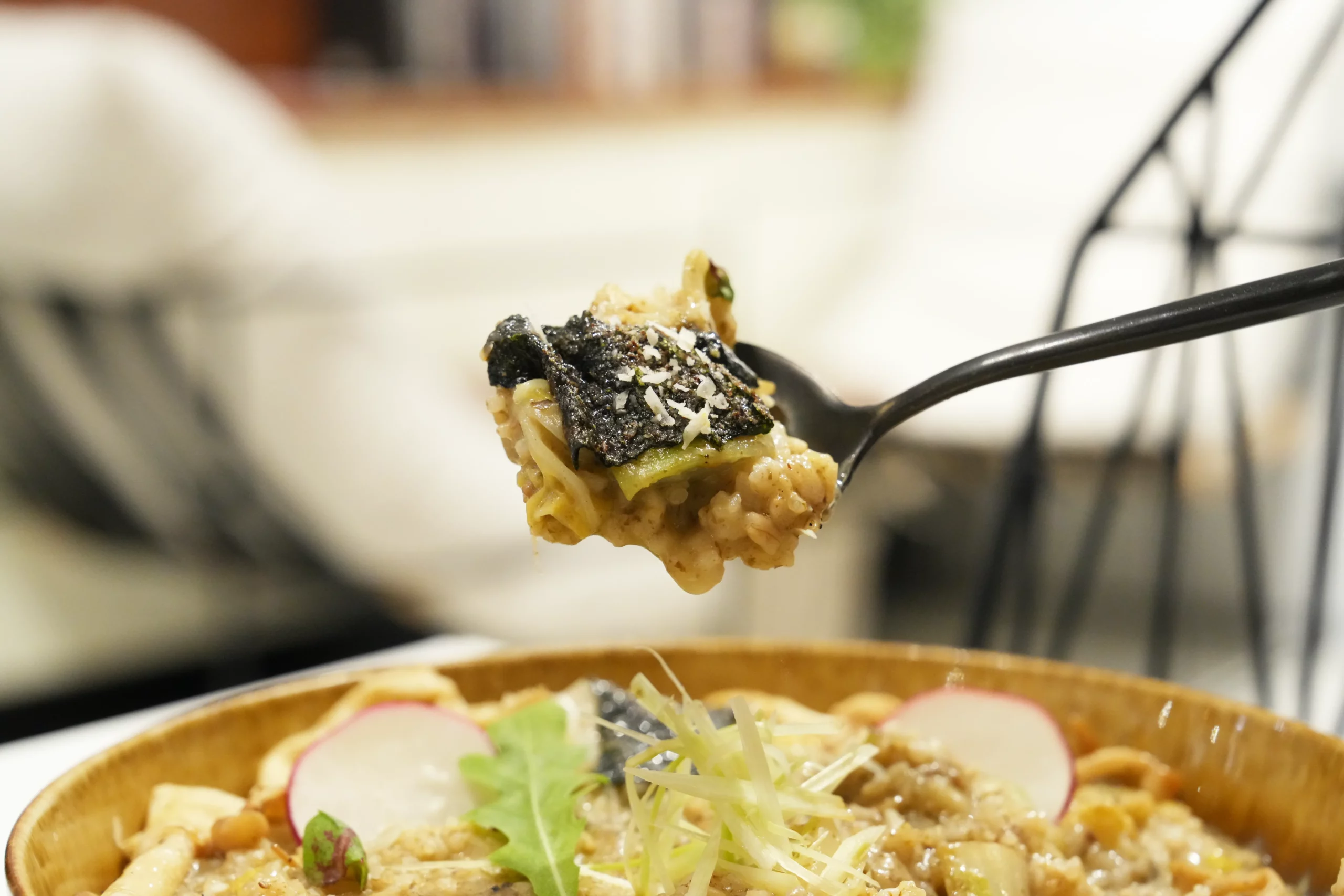 ▼燉飯中還加入了炸海苔,酥脆的海苔跟飯一起入口,風味十足,為料理再添層次感。