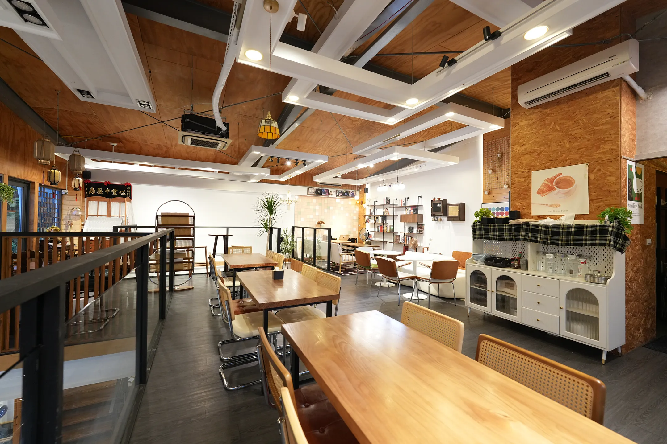 ▼原木色的桌椅、匾額與窗櫺設計,散發出濃厚的東方韻味,帶有一絲古典雅緻的氣息。