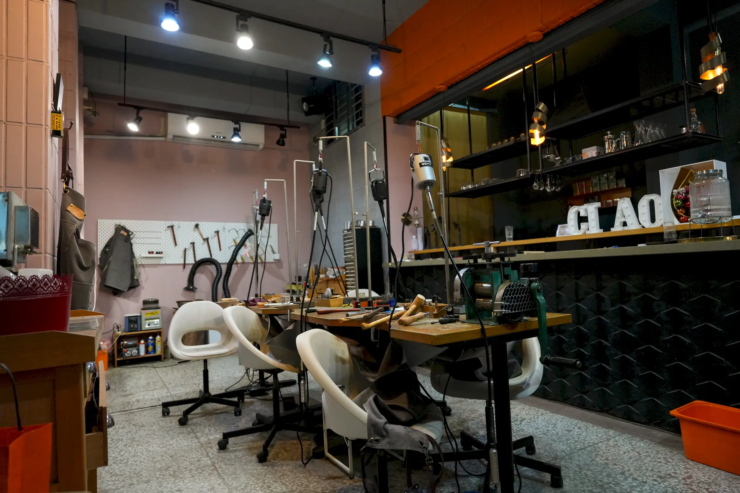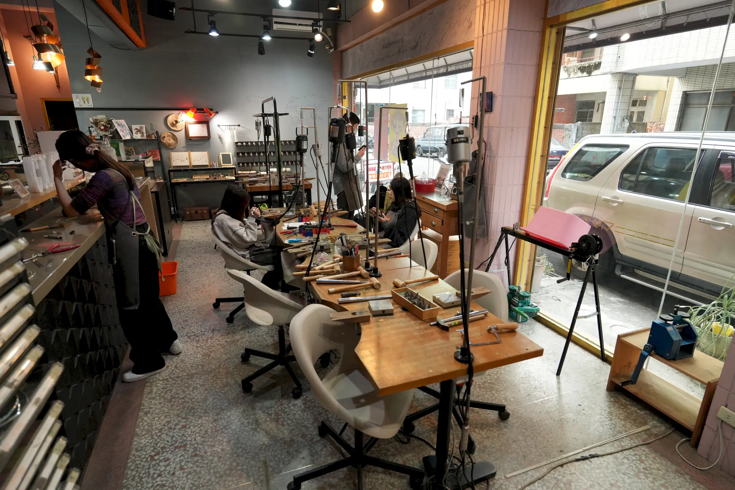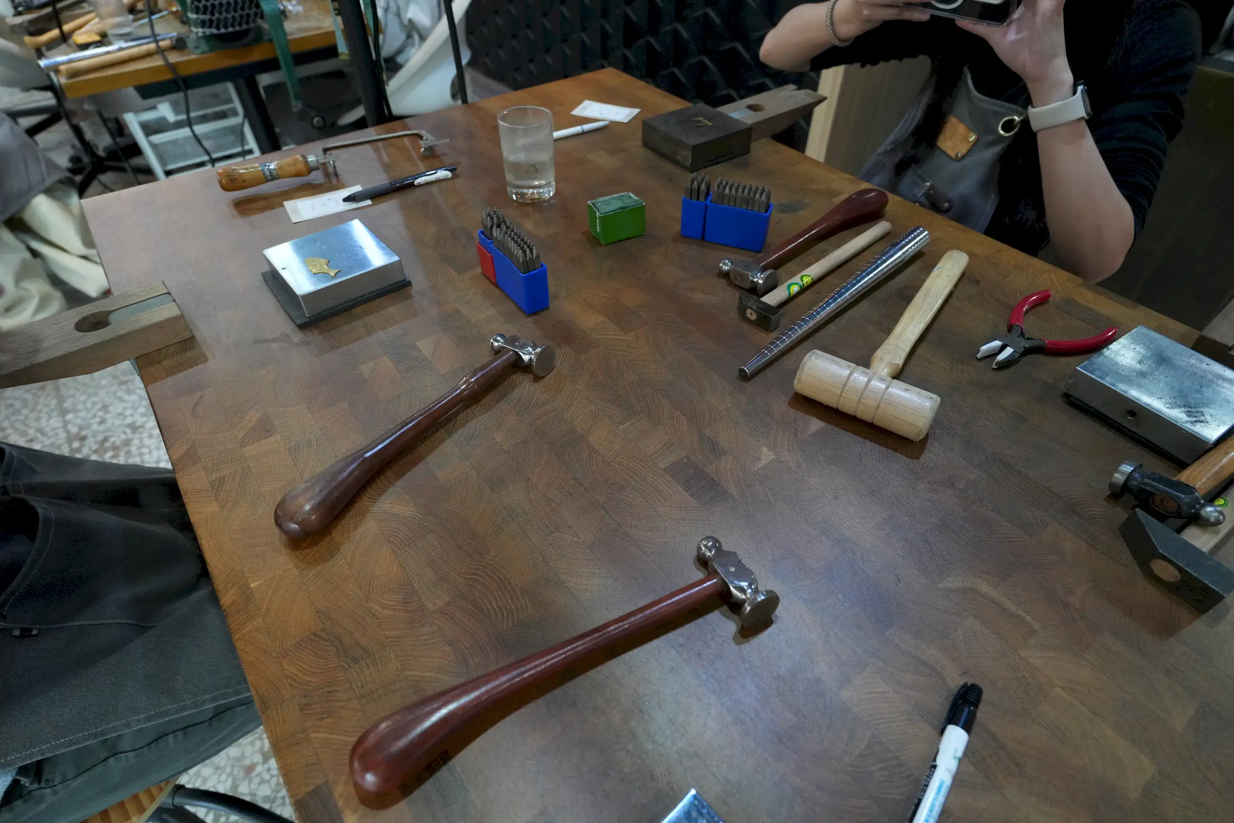 ▼一踏進店內,就能感受到濃濃的金工手作氛圍,軌道燈讓整體光線顯得柔和不少,桌上也已經整齊擺好各種專業工具,坐下的瞬間真的會有種「自己變成金工職人」的錯覺 XD。