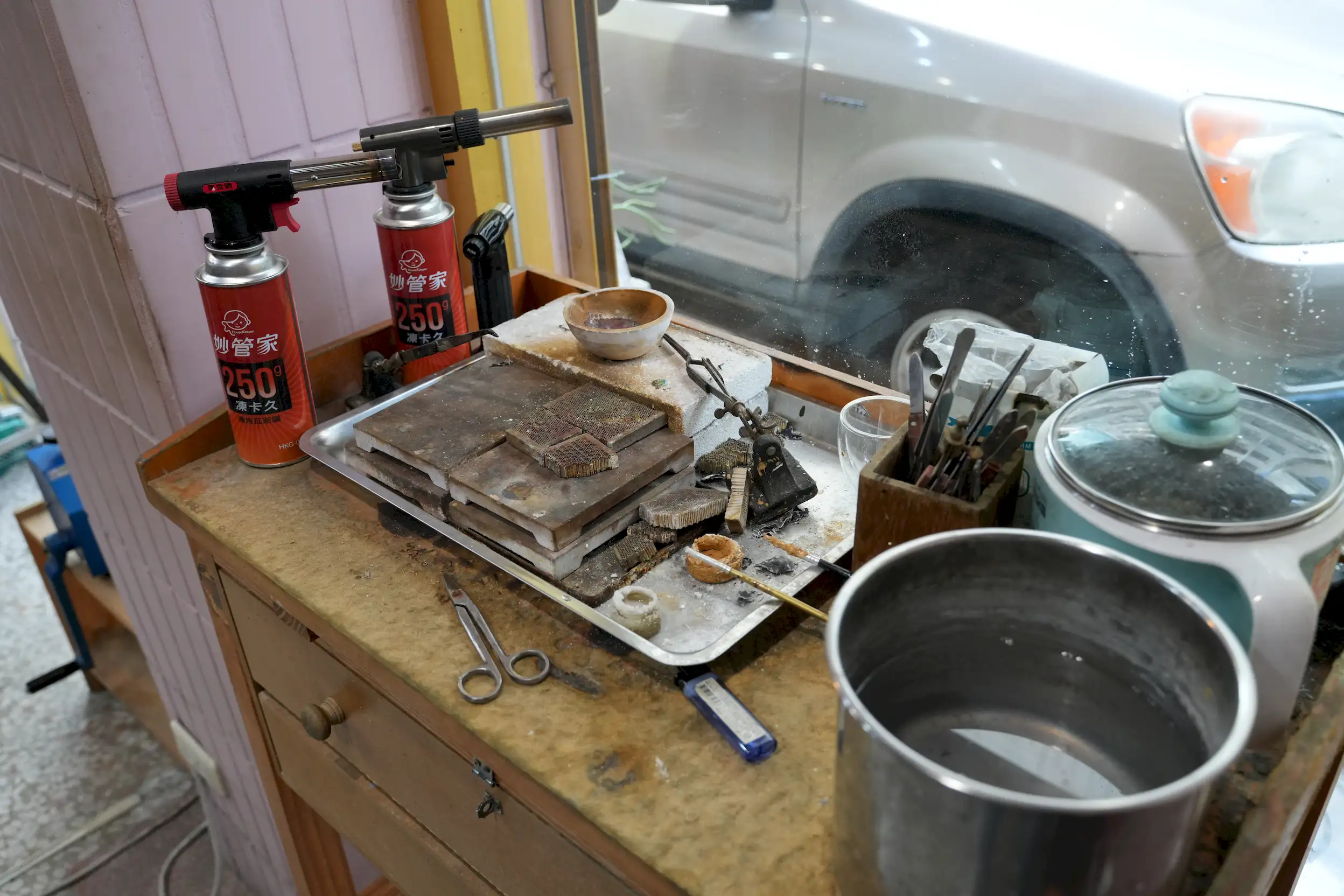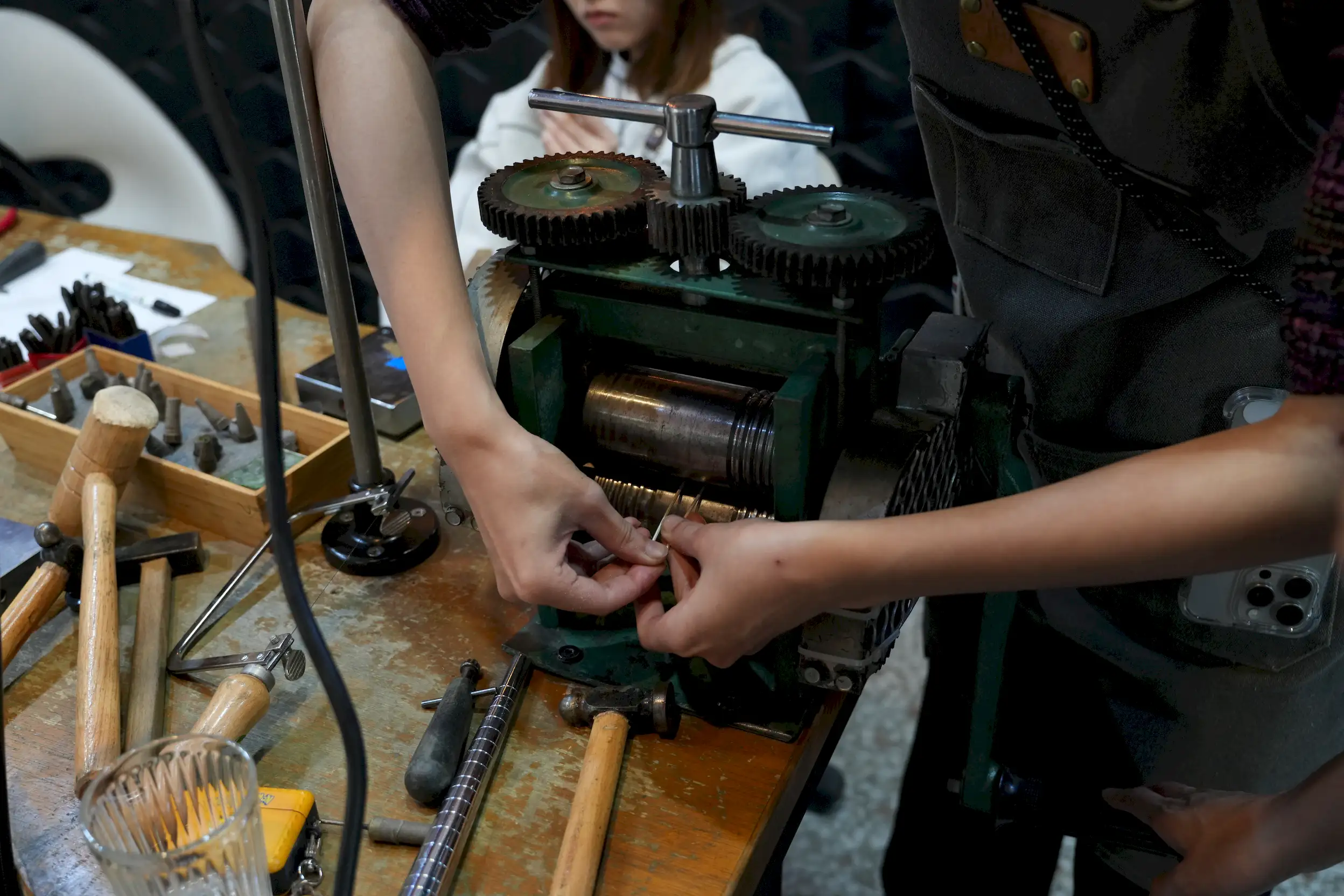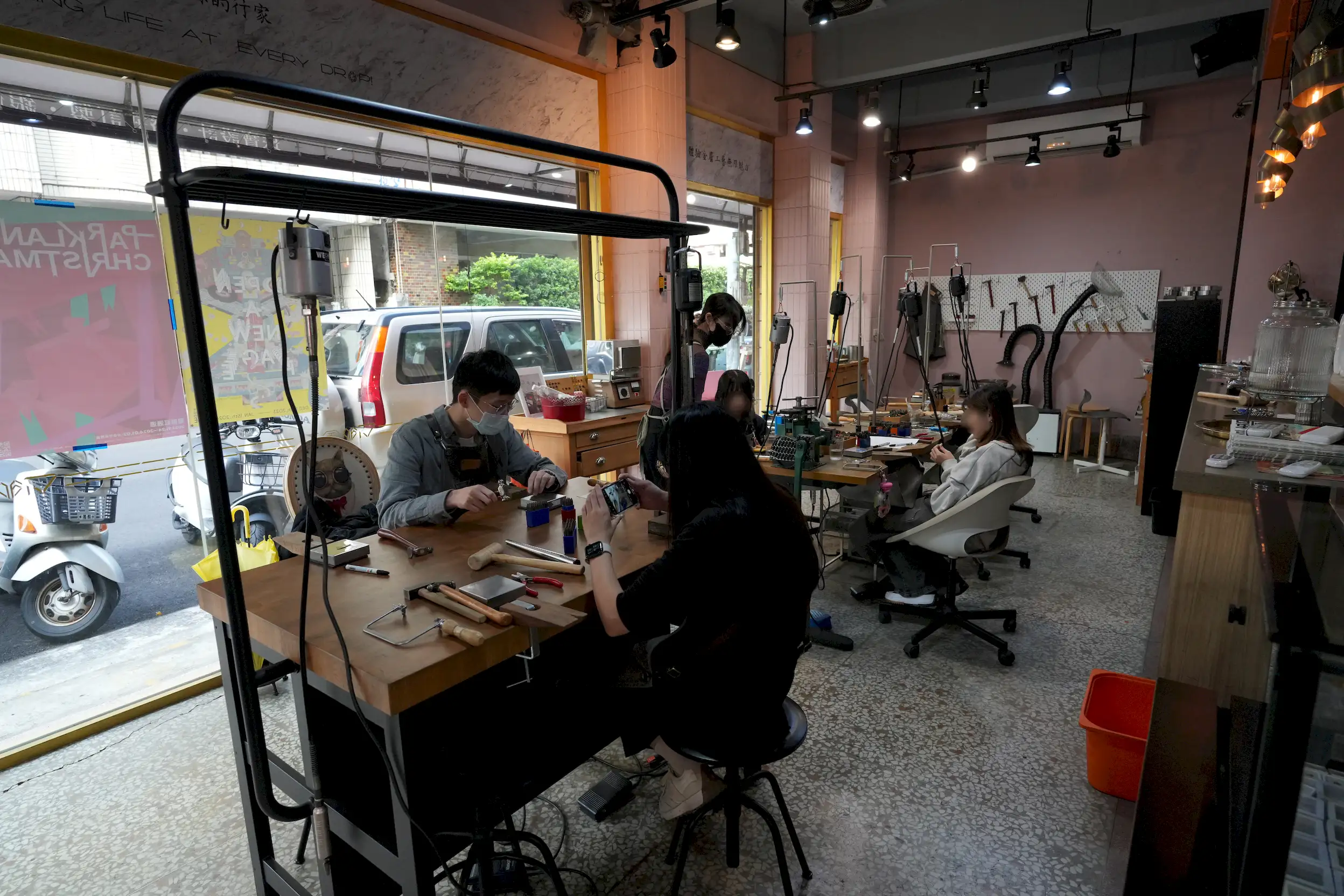 ▼一踏進店內,就能感受到濃濃的金工手作氛圍,軌道燈讓整體光線顯得柔和不少,桌上也已經整齊擺好各種專業工具,坐下的瞬間真的會有種「自己變成金工職人」的錯覺 XD。