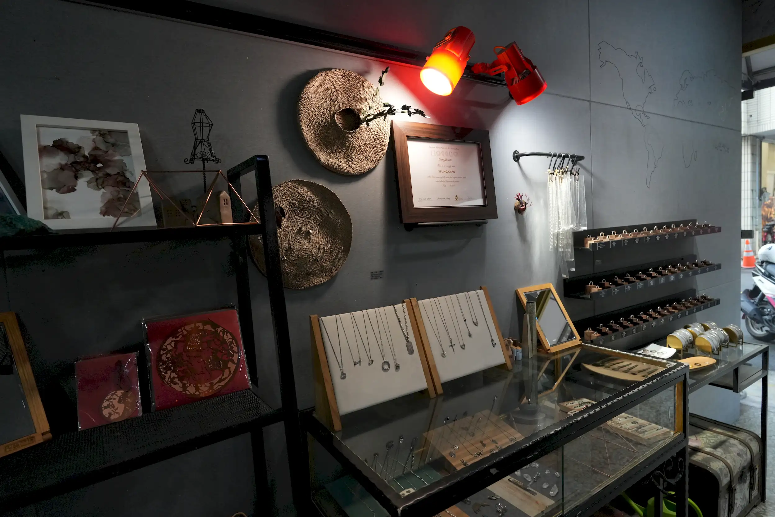 唯一兩個比較小的缺點是稍微有點擠,以及軌道燈的照明強度不太夠,白天還好,鄰近傍晚就會有點暗,不過這兩個都是微不足道的小問題,並不會太影響到整體金工體驗,如果對這些飾品的款式有興趣,可以來這邊體驗看看,做完真的會蠻有成就感的。