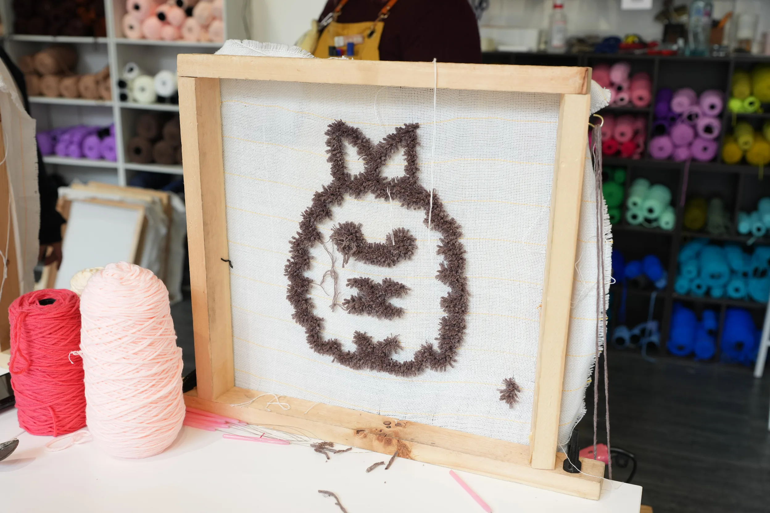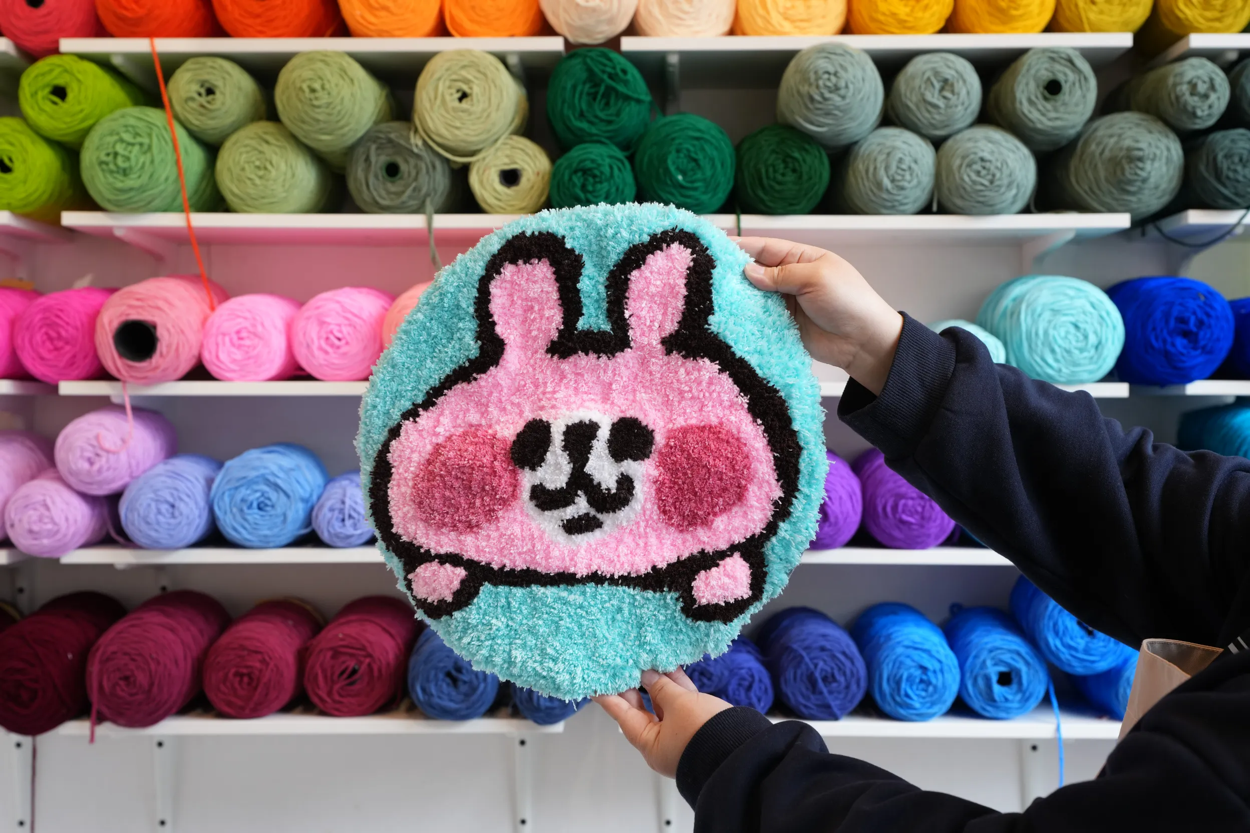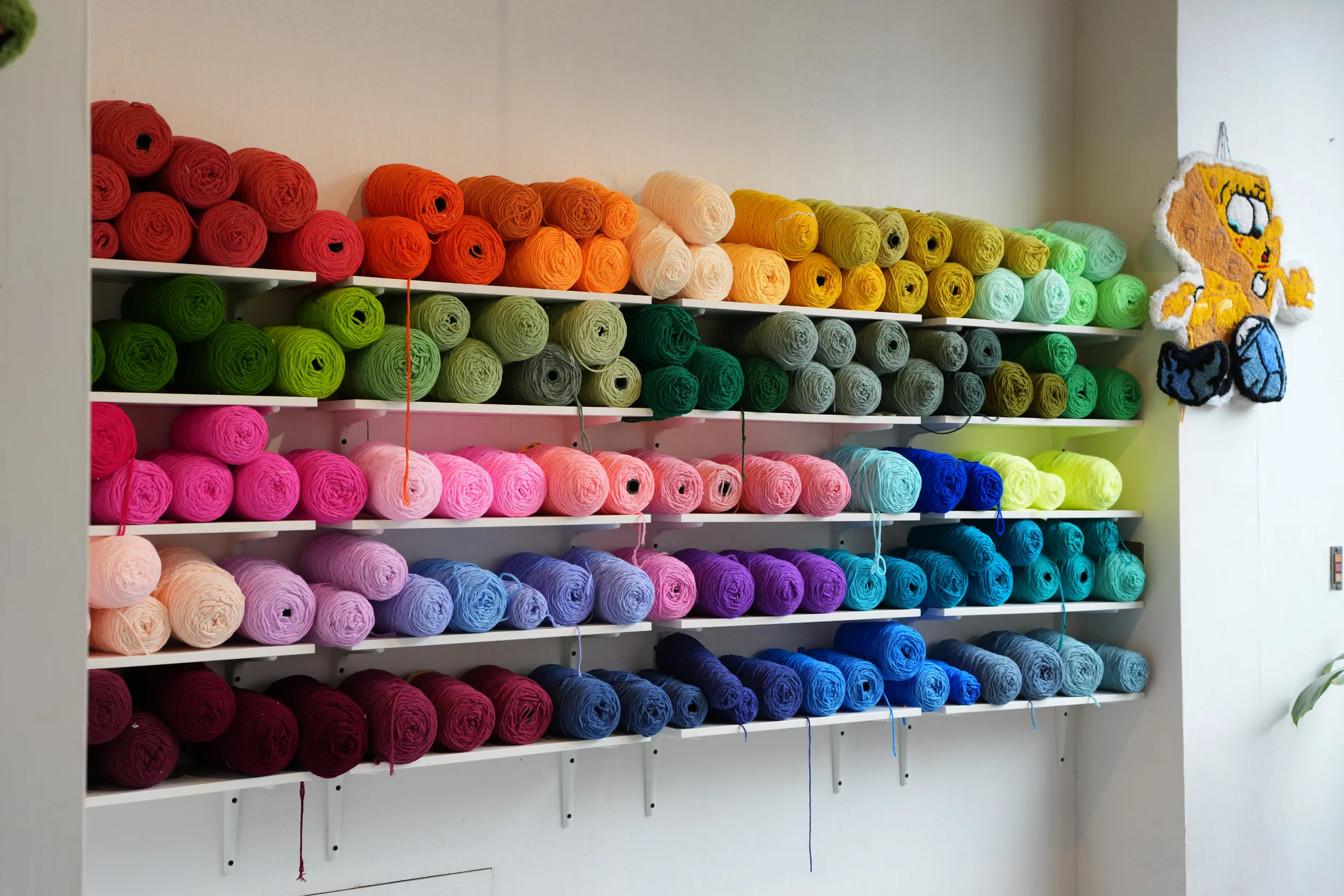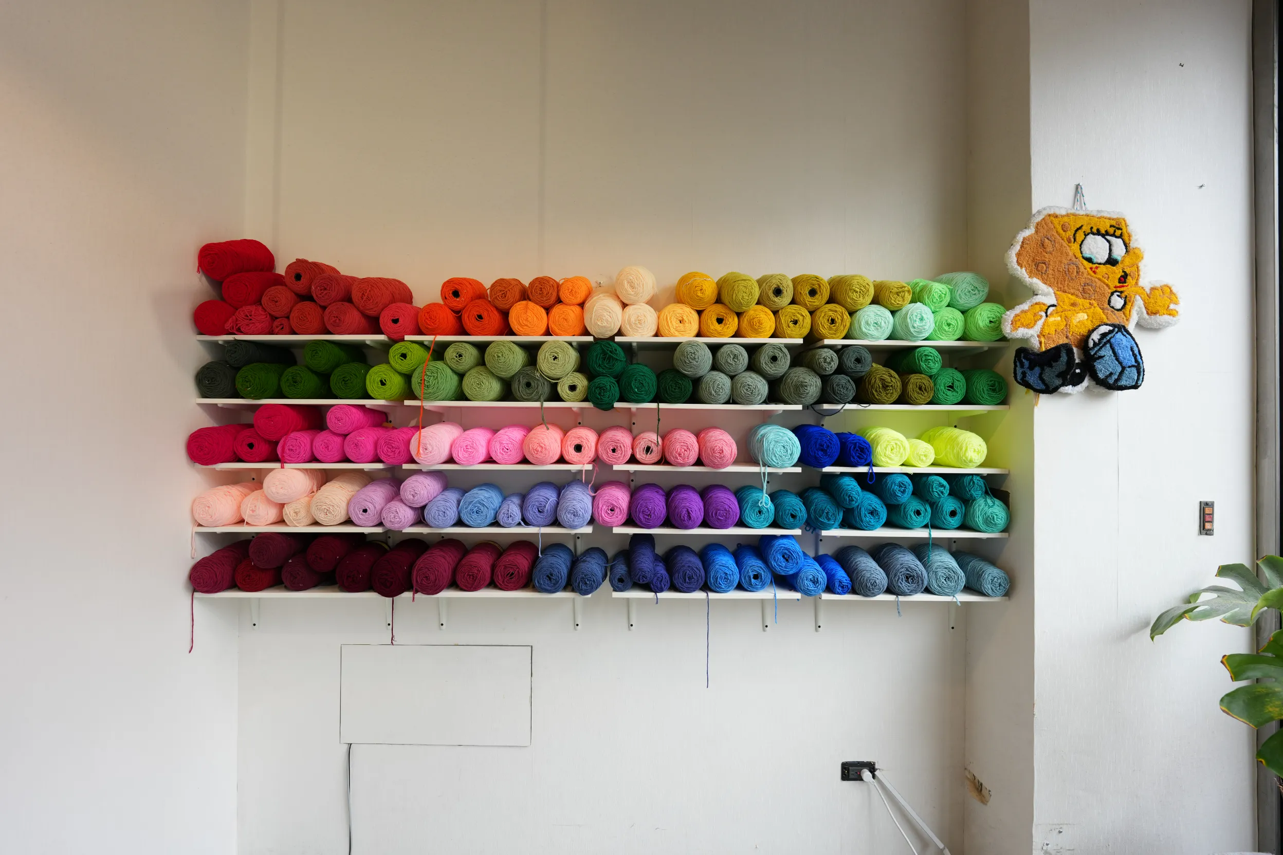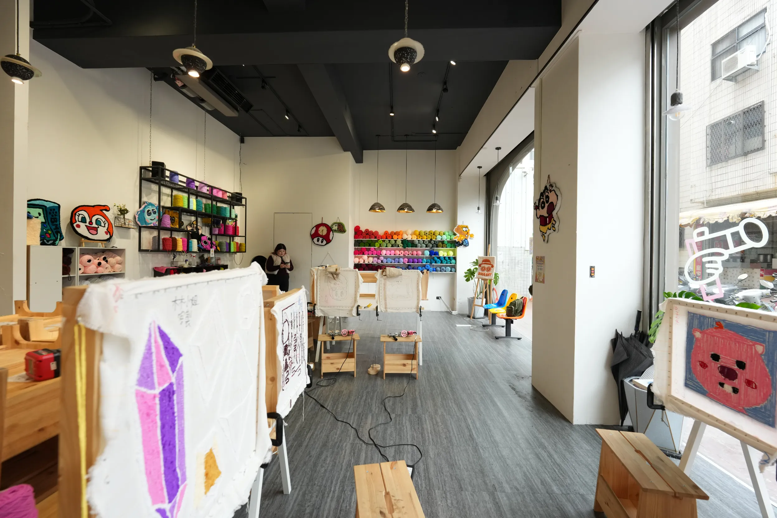 最近掀起一股「手作地毯」熱潮,IG上看到大家拿著簇絨槍創作出超可愛的地毯作品,身為手作新手的我決定親自體驗這種「最療癒的手作課」— Tufting 簇絨地毯!特地預約了在台北、台中都有分店的「Does Art 都是藝術」,這次去的是位於台中市西區的「Does Art 都是藝術」,教室牆上滿滿的毛線球,顏色繽紛到讓人瞬間心情變好。