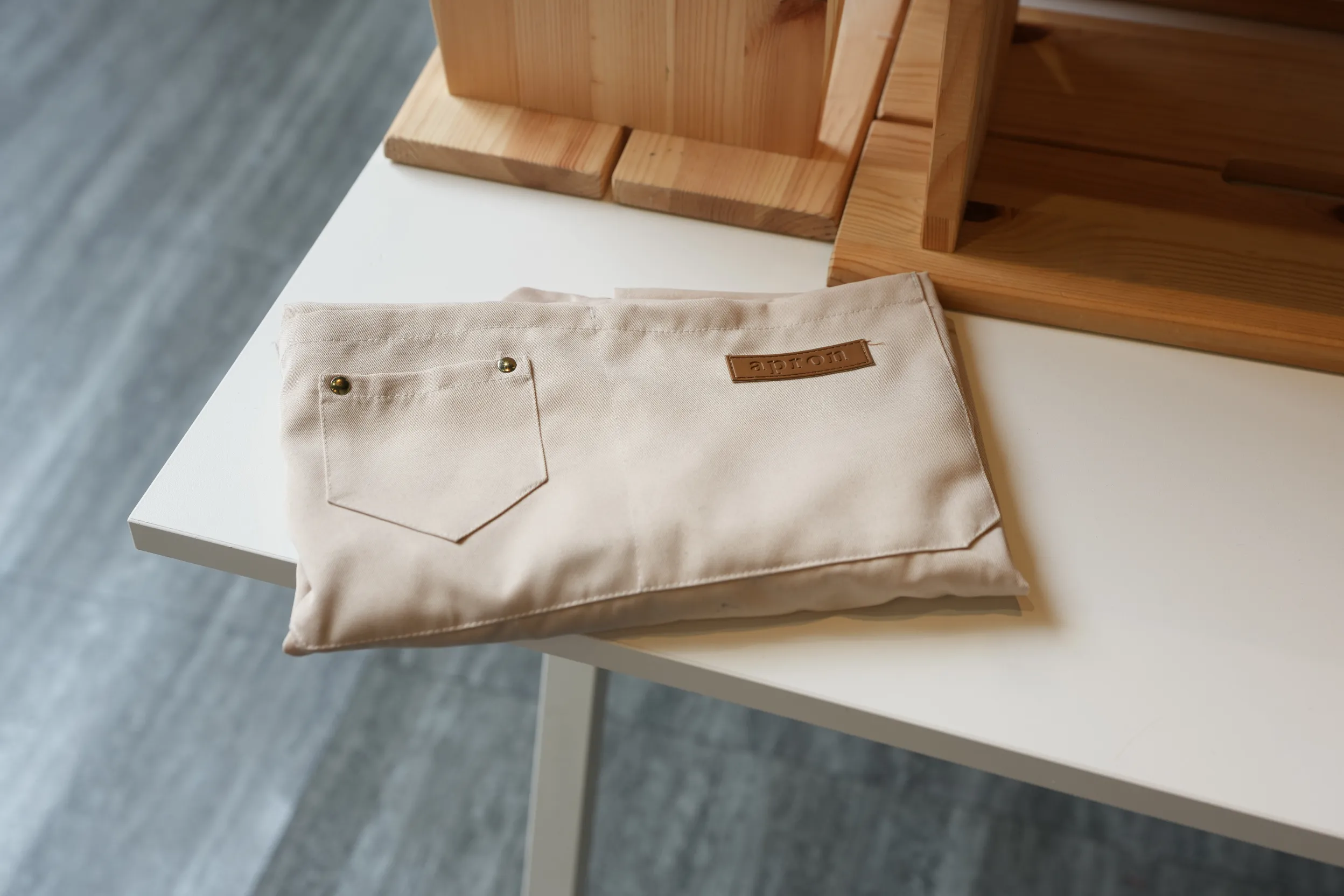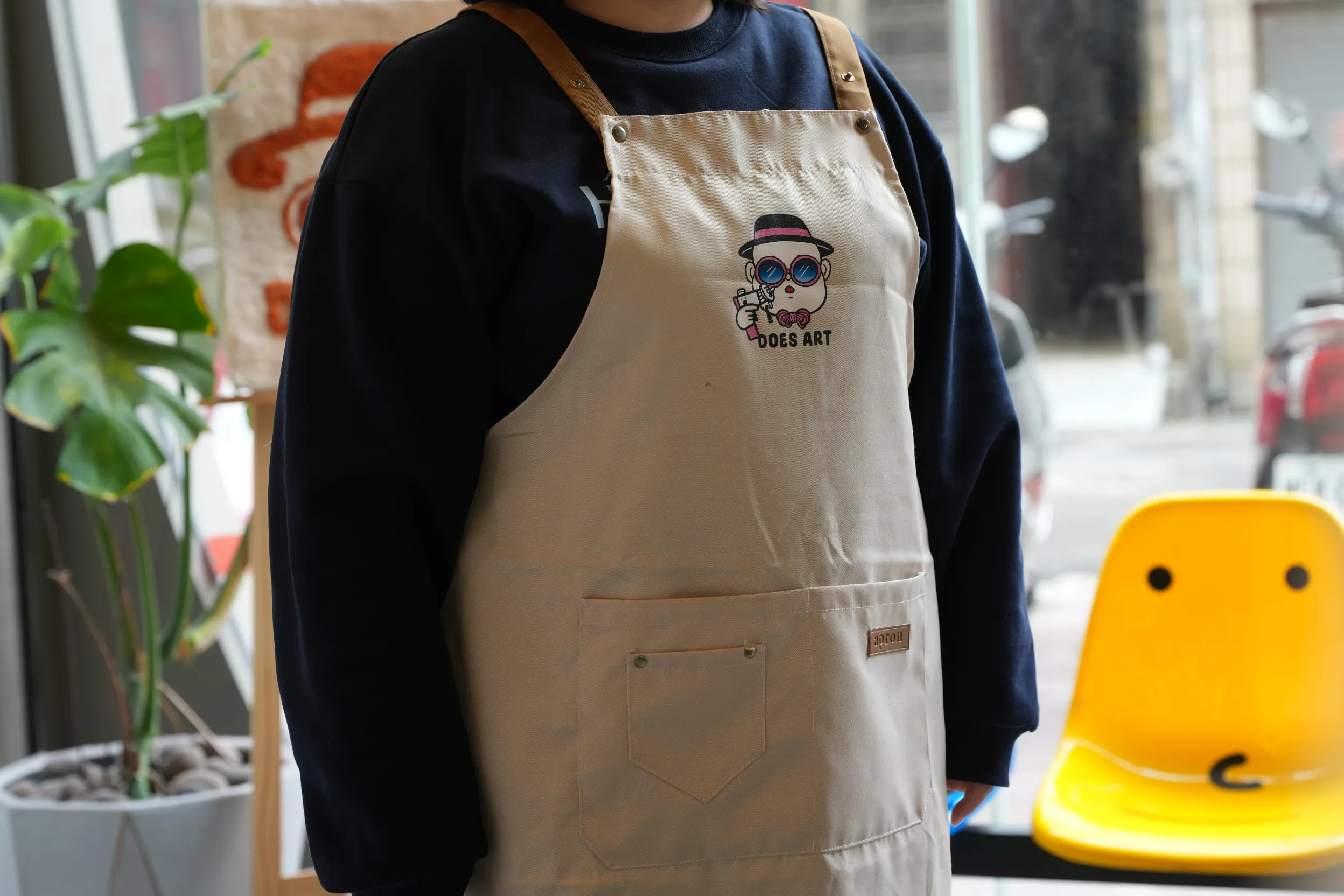 ▼桌子旁邊有擺放圍裙,穿上圍裙後發現有店家的Logo好可愛。