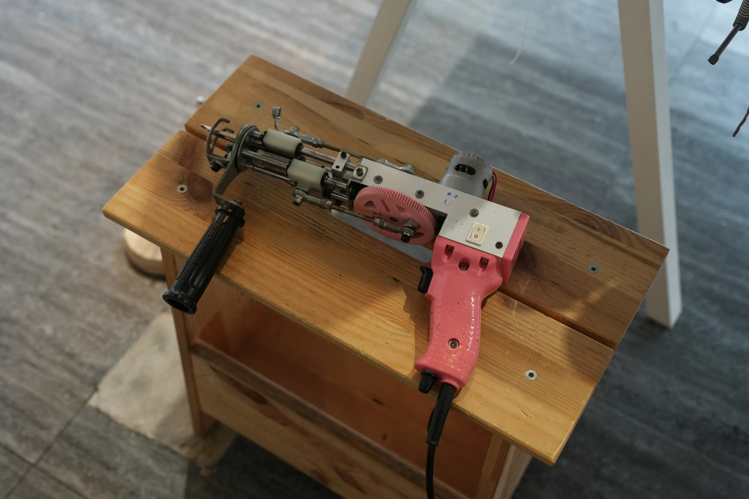 在使用簇絨槍的過程中,需要特別注意前端的針頭,避免被扎到受傷。長髮的女生建議將頭髮綁起來,以免捲入簇絨槍內造成危險。這次製作地毯時,教室裡也有其他客人同時操作,後半部老師有點分身乏術,收尾階段的說明因此略顯簡略,態度也相對顯得比較冷淡。