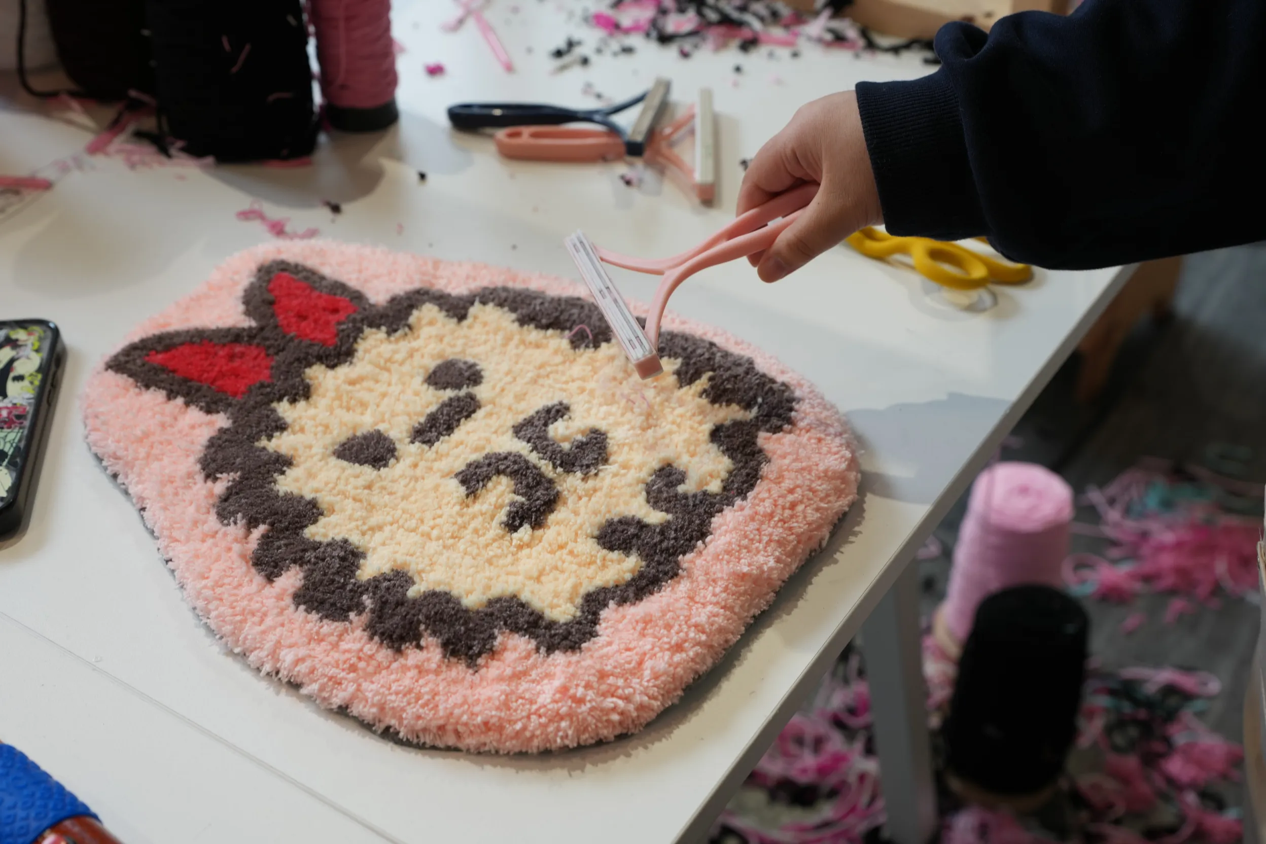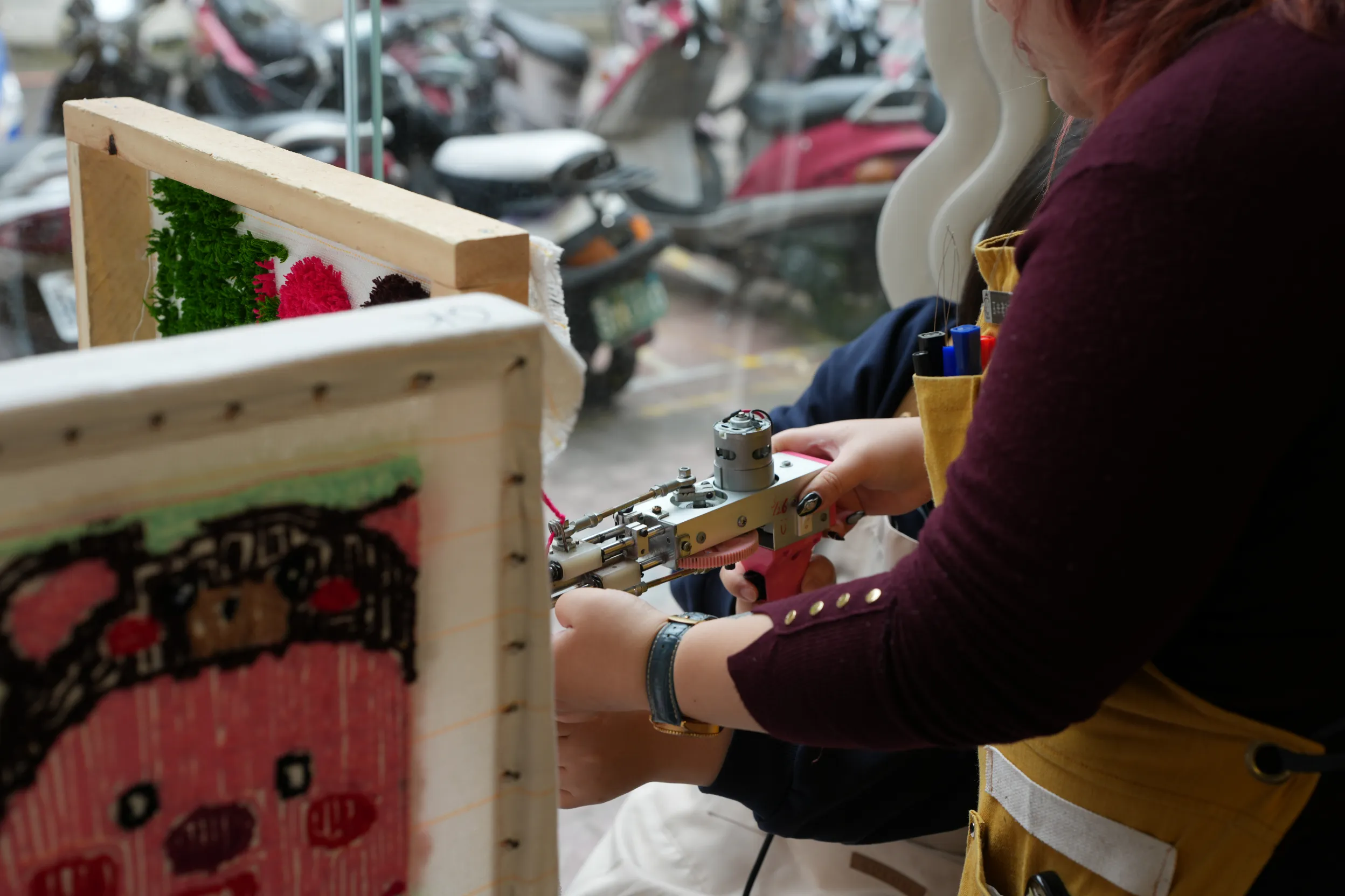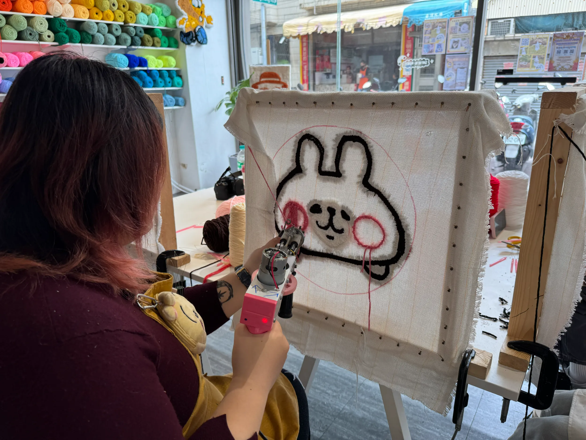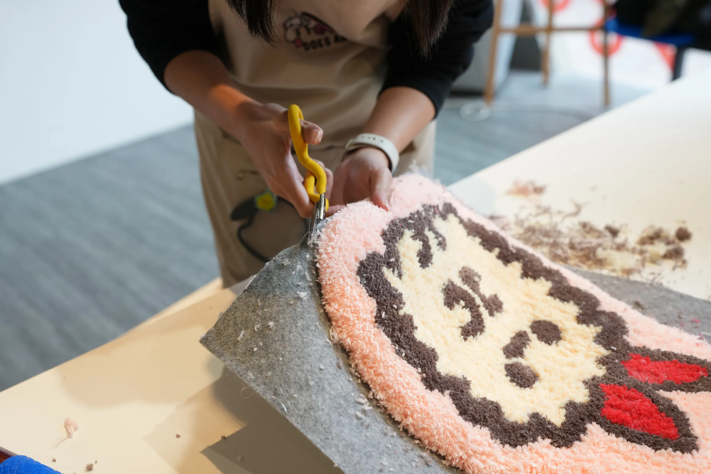 即便是第一次製作地毯的新手,也能輕鬆上手,老師會先耐心示範簇絨槍的基本用法,過程中遇到不懂的地方隨時都可以詢問。當我好奇會不會出現打失敗的作品時,老師也說明會盡力幫忙補救,確保每一件作品都能完整漂亮,讓整個手作過程很安心,看到成品時充滿成就感。