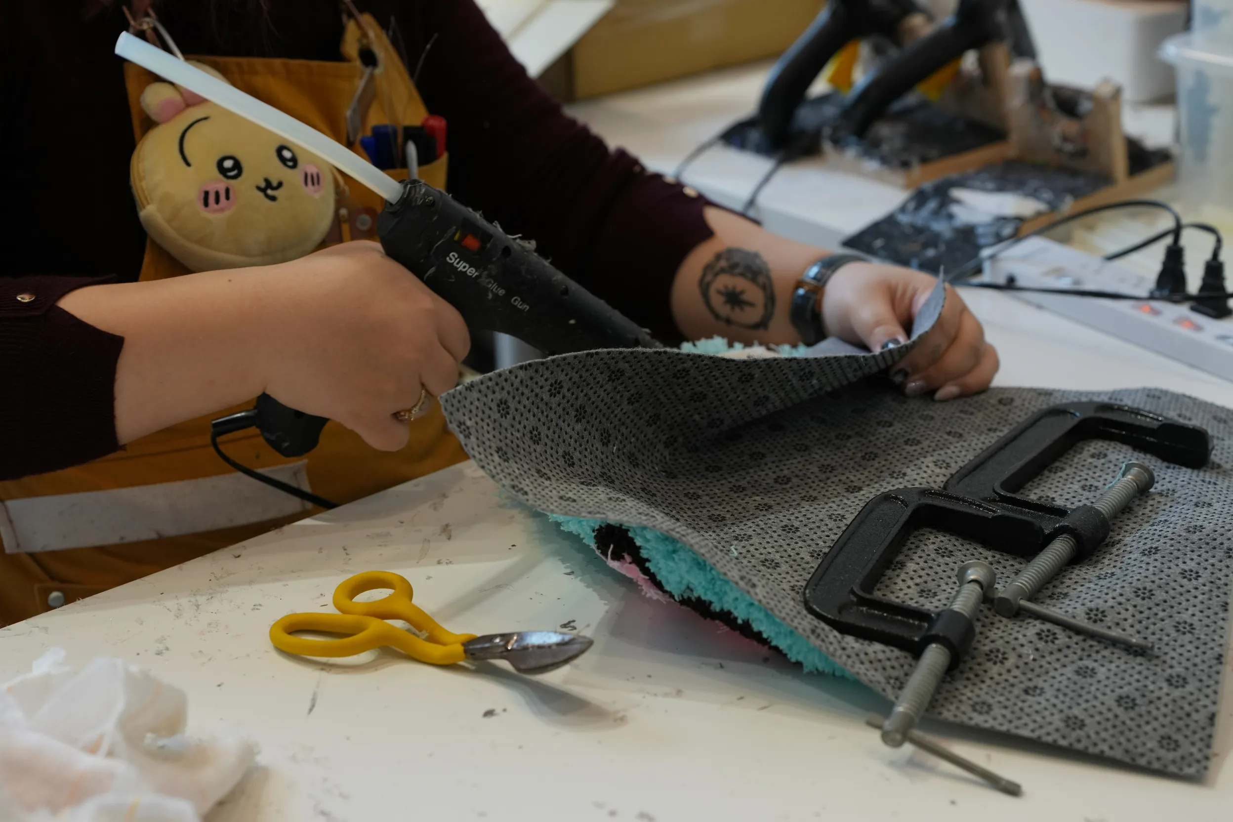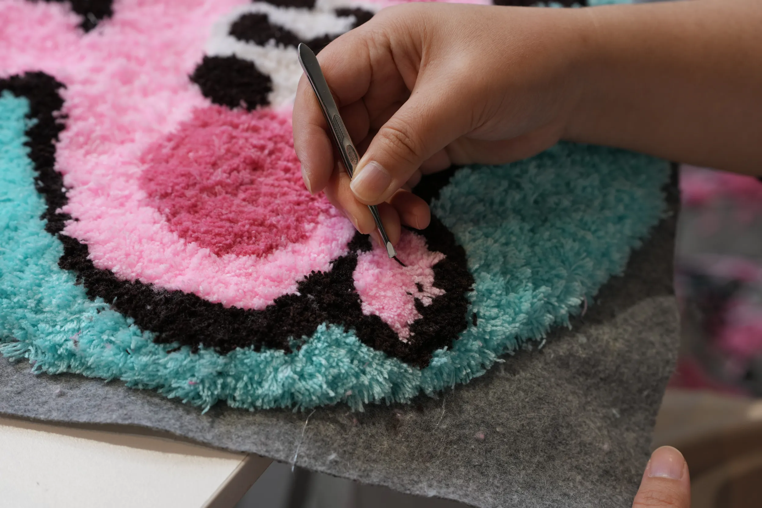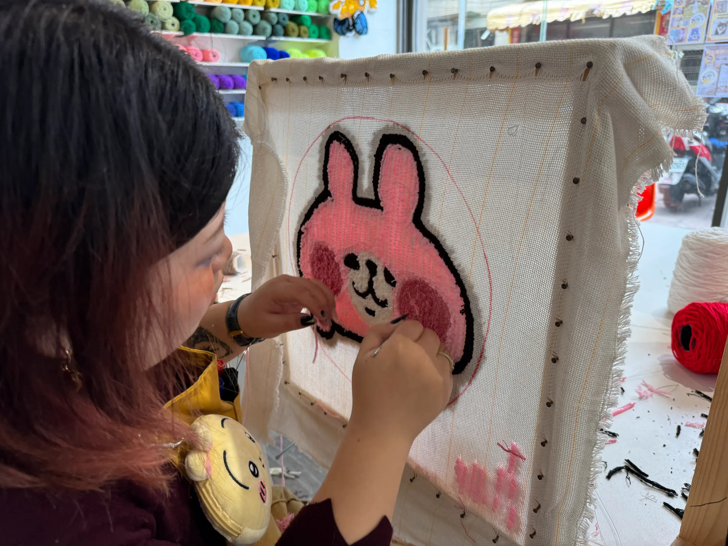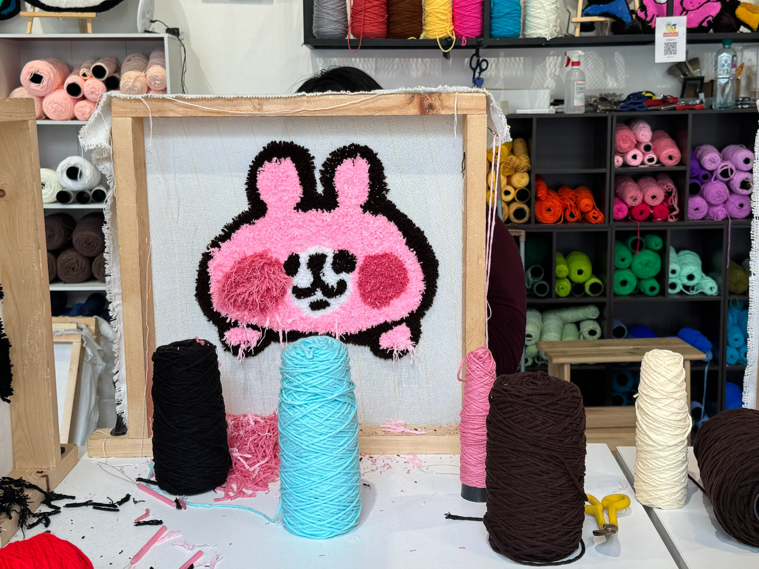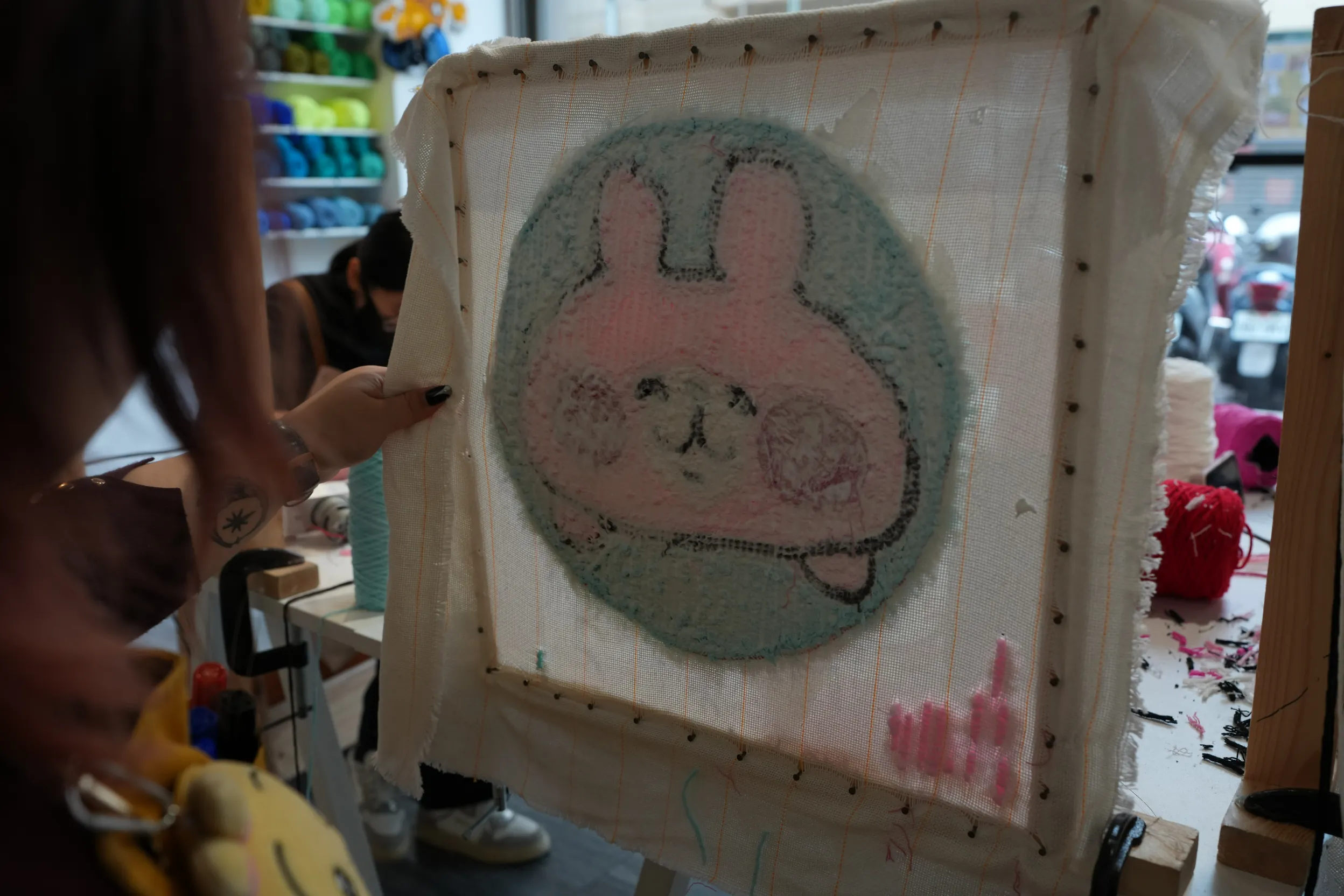 即便是第一次製作地毯的新手,也能輕鬆上手,老師會先耐心示範簇絨槍的基本用法,過程中遇到不懂的地方隨時都可以詢問。當我好奇會不會出現打失敗的作品時,老師也說明會盡力幫忙補救,確保每一件作品都能完整漂亮,讓整個手作過程很安心,看到成品時充滿成就感。