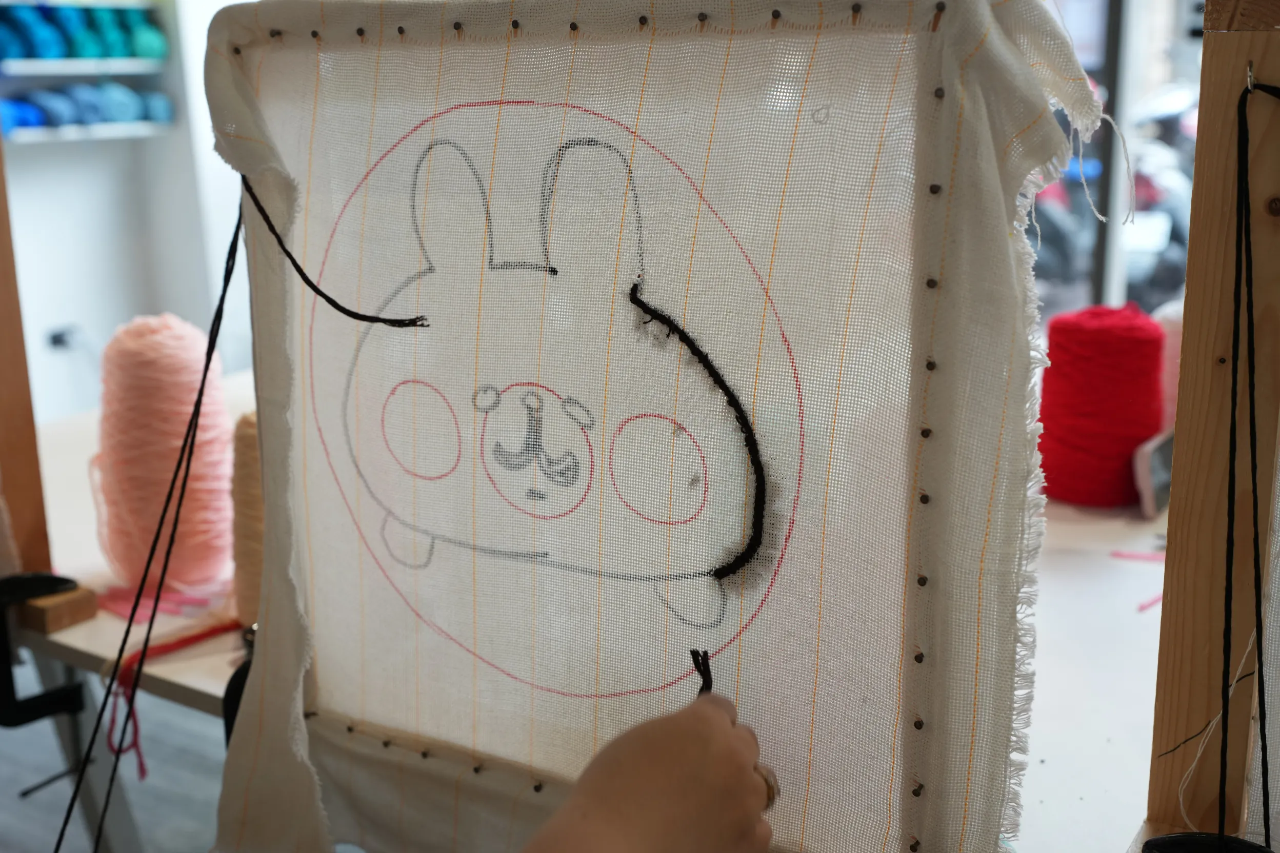 「DoesArt 都是藝術」的手作地毯課可不是臨時想去就能上的唷,課程採取全預約制,必須事先透過 LINE 預約,因為老師會先幫大家確認想做的圖案是否適合簇絨製作,再把想做的圖案圖片傳給可愛小幫手,他們就會幫忙評估、提前構圖,確保上課當天可以順利開織!