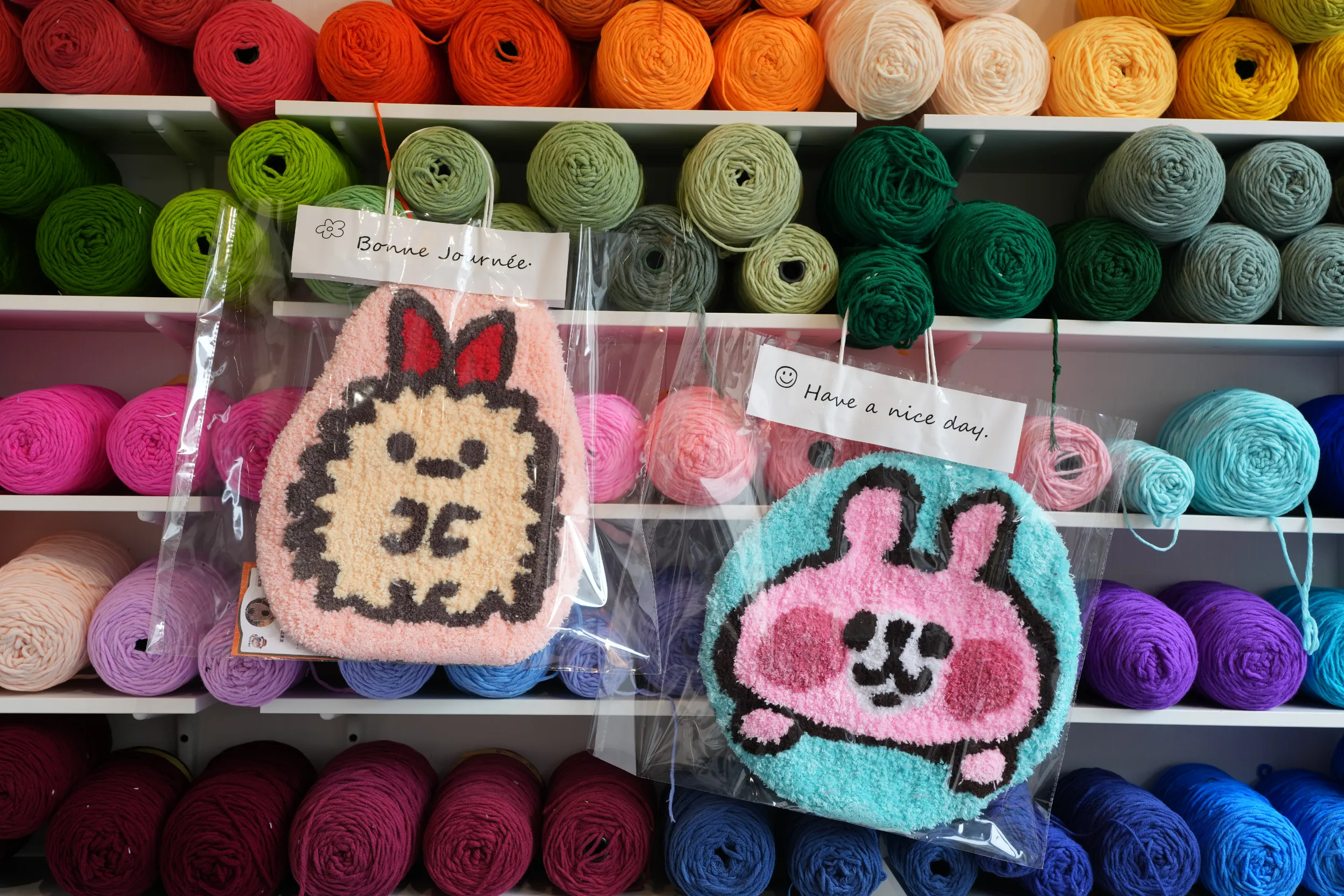 ▼左圖毛線是朋友挑選的配色,他這次要製作的地毯圖案是可愛的炸蝦寶寶,整體走溫暖療癒風。我則選了兩種不同的粉色和蒂芬妮藍色毛線,準備織出卡娜赫拉主題的地毯,光是想像完成後的樣子就讓人充滿期待。
