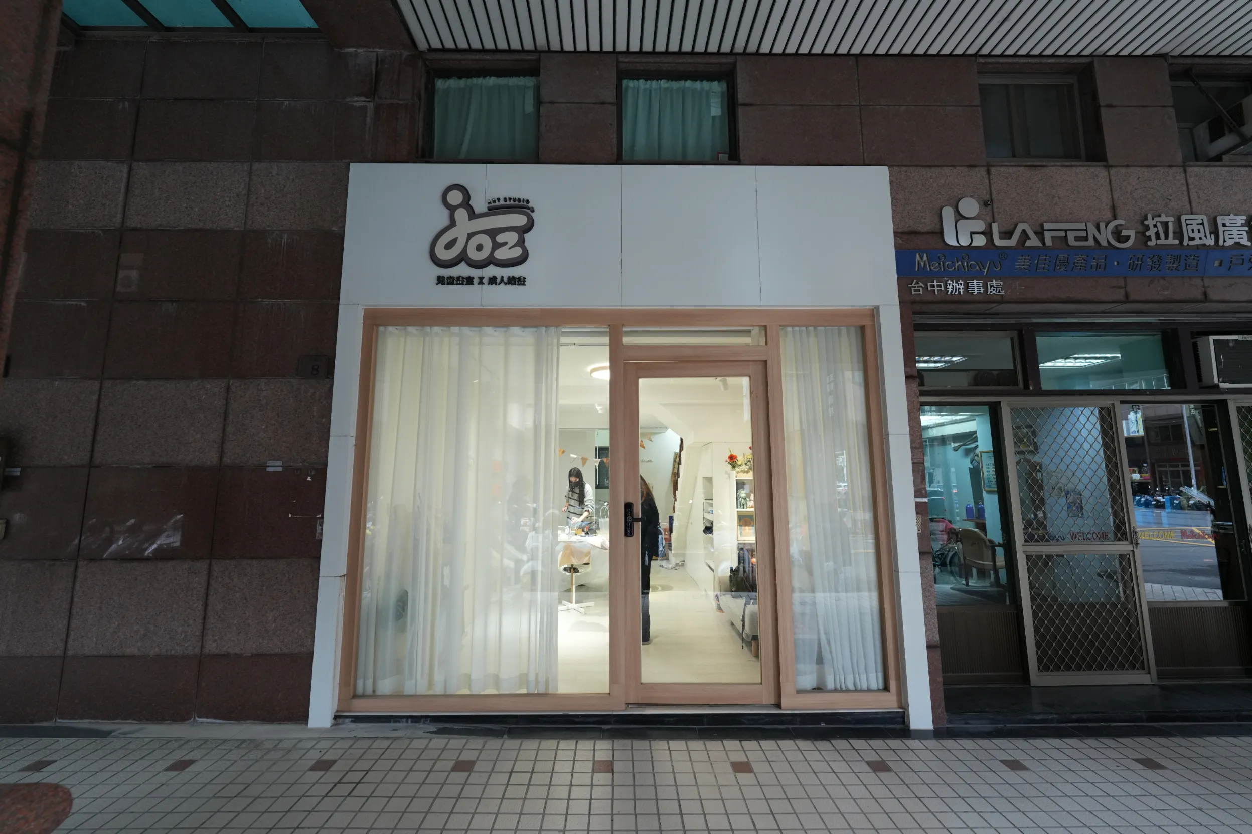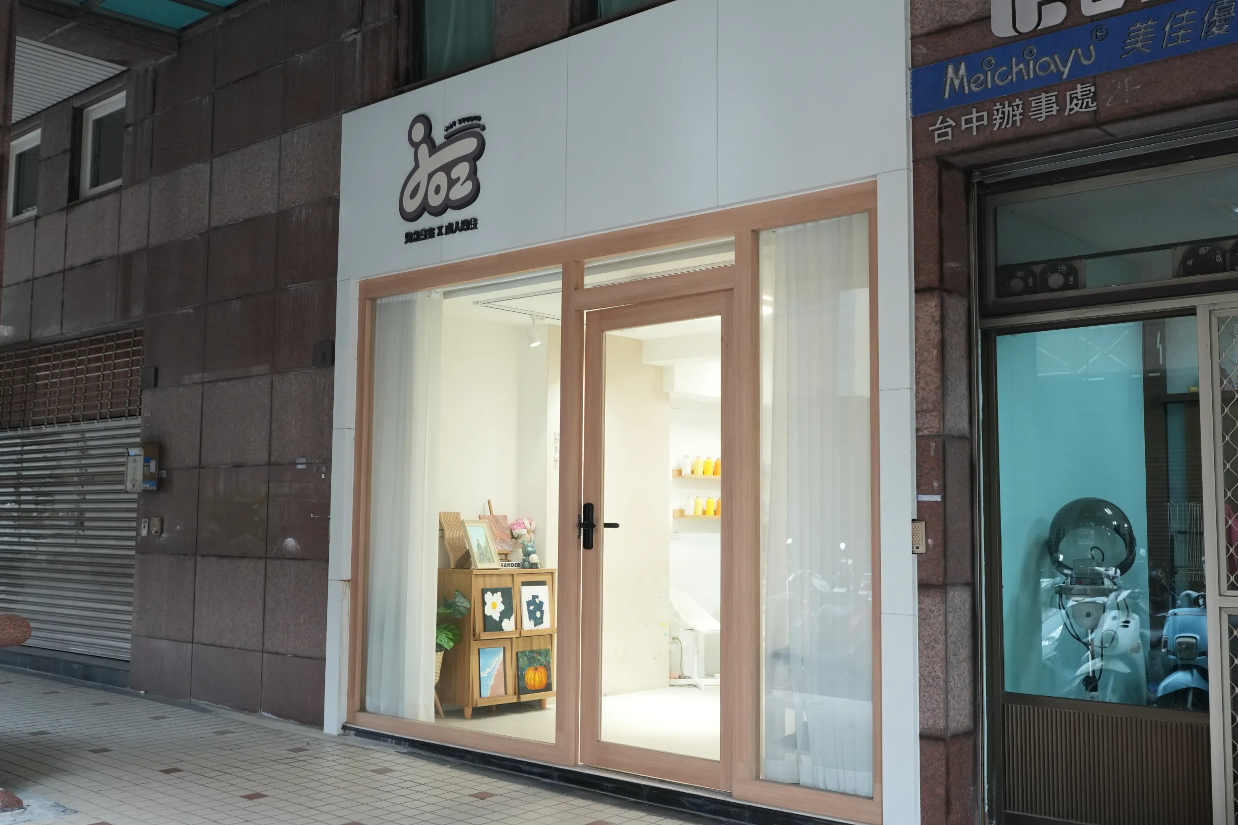 ▼「Jozart Studio」採全預約制,主要提供成人繪畫與兒童美術課程。畫室門口不大,外觀簡潔安靜,給人一種輕鬆、親近的感覺。