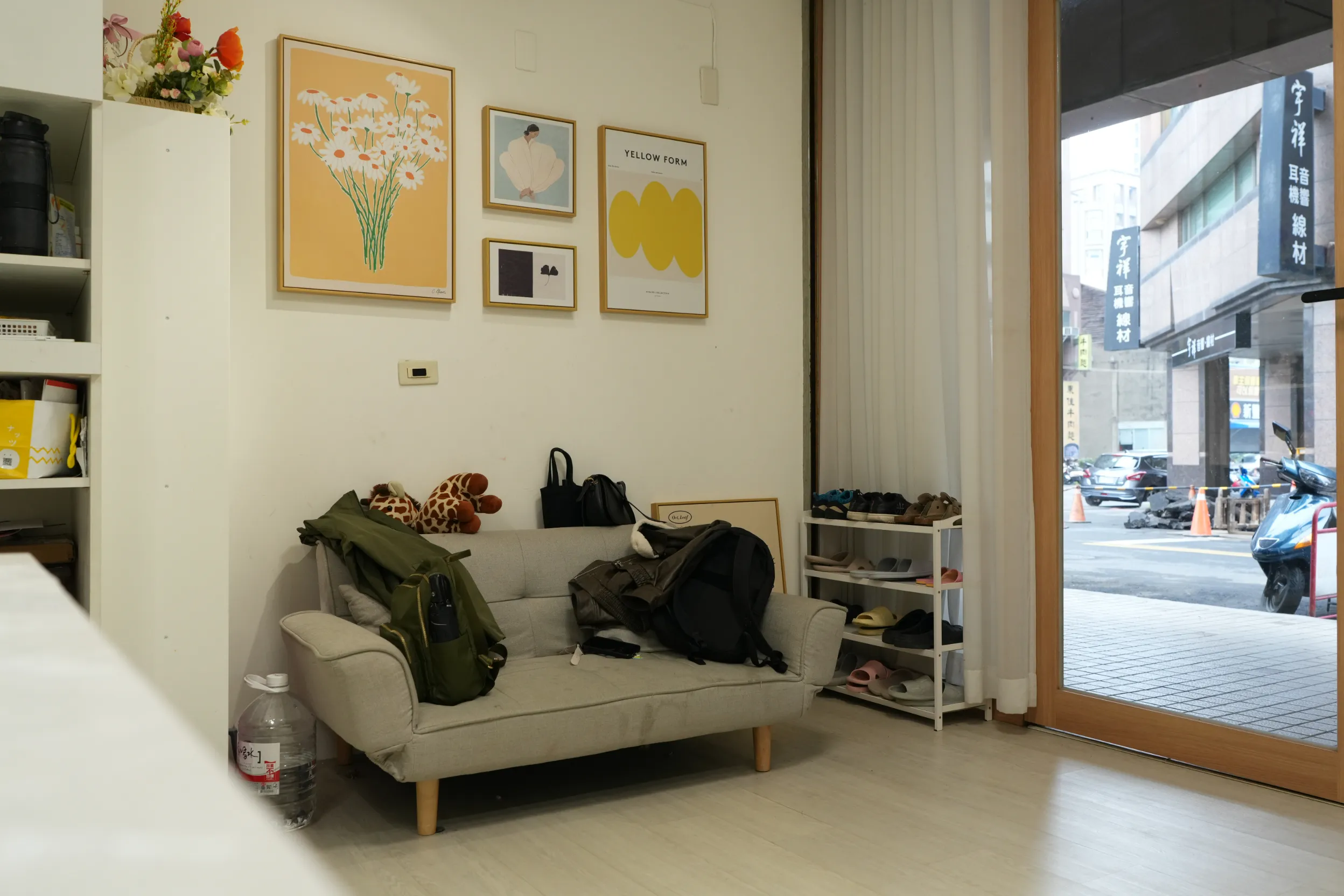 ▼一進門的右側放著一張小沙發,我們入內後要先在這裡換上室內拖鞋,再進入畫室空間。