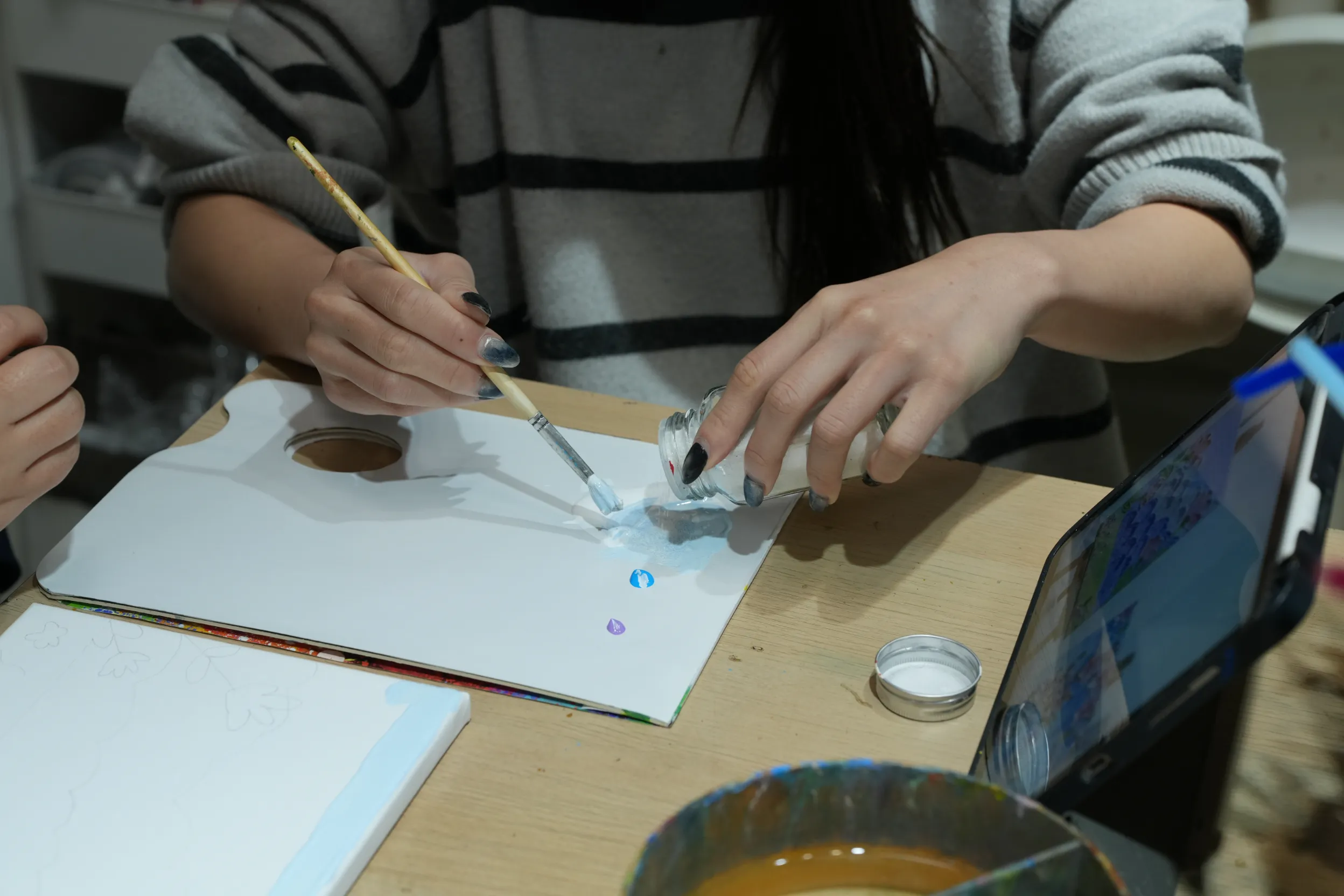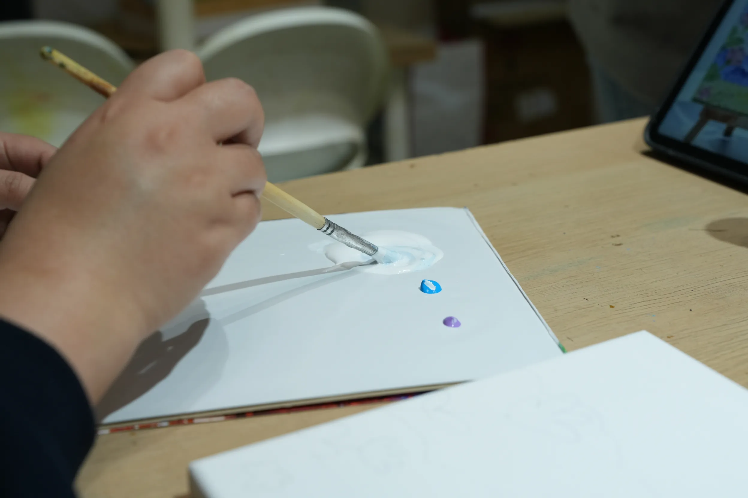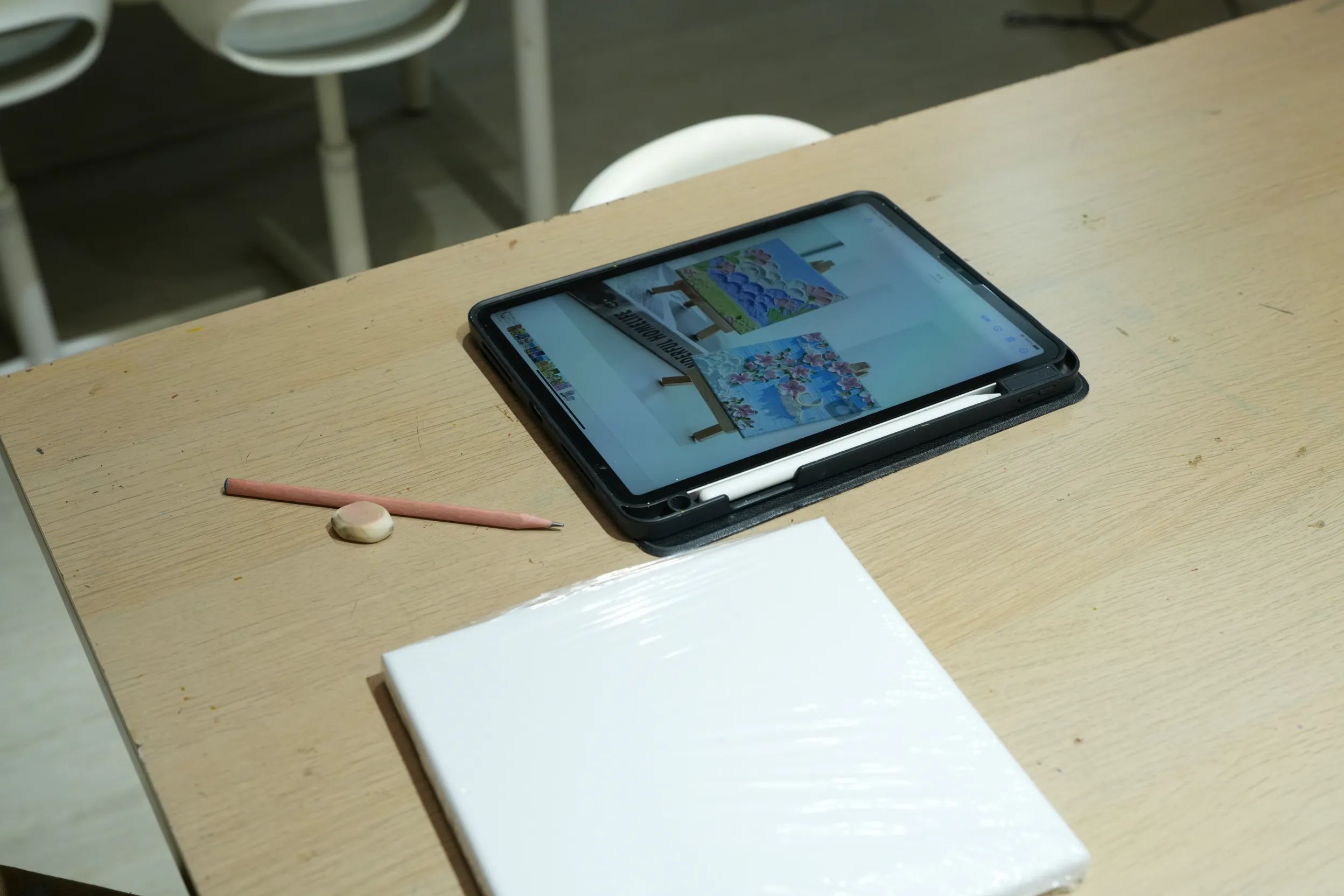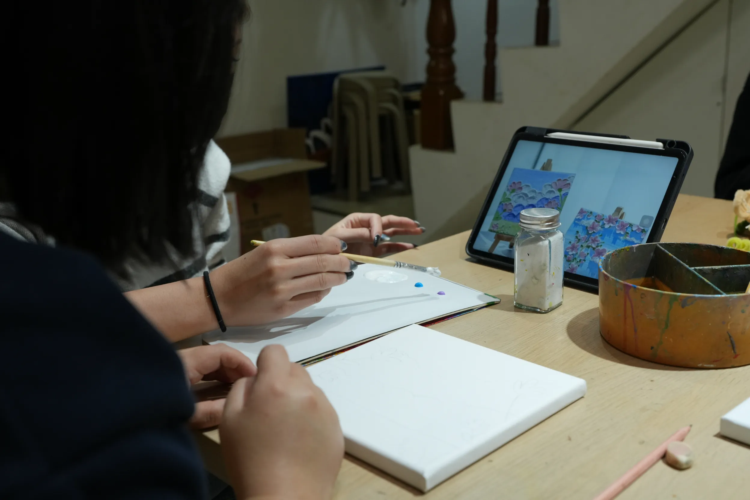 ▼這次我體驗的是肌理畫,因為事前已經挑好想畫的範本,老師會準備一台 iPad,讓我把參考圖片傳到上面,創作時直接放在旁邊看會更方便,這點真的滿貼心的。