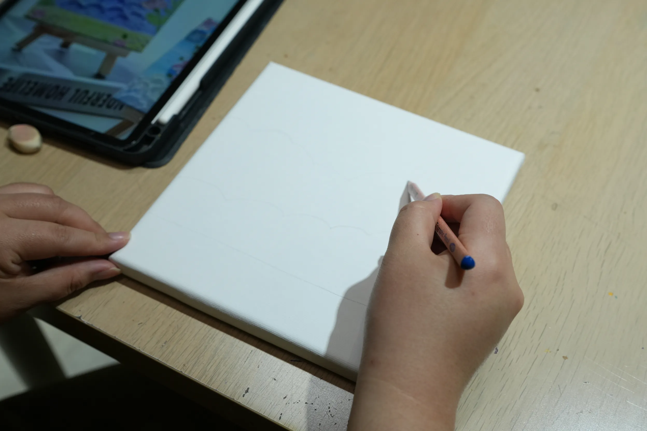 ▼老師建議先用鉛筆描出大致的區塊,這樣後續上色會更方便,也能讓整體構圖更清晰。