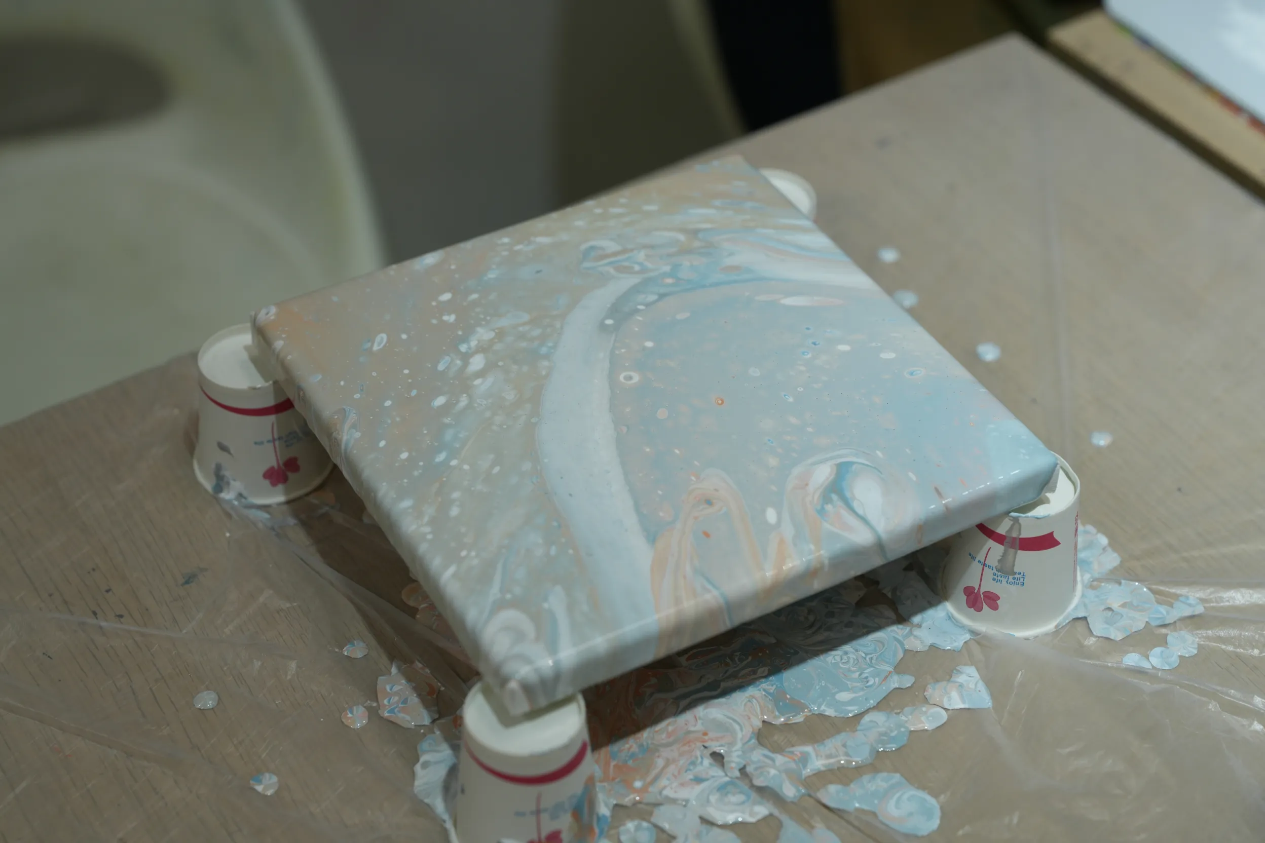 ▼流體畫完成啦,不過因為顏料尚未完全乾,所以今天無法帶回,流體畫大概要等1 ~ 2天顏料才會全乾透,可以另外跟老師約時間拿畫,或者選擇寄送到家。