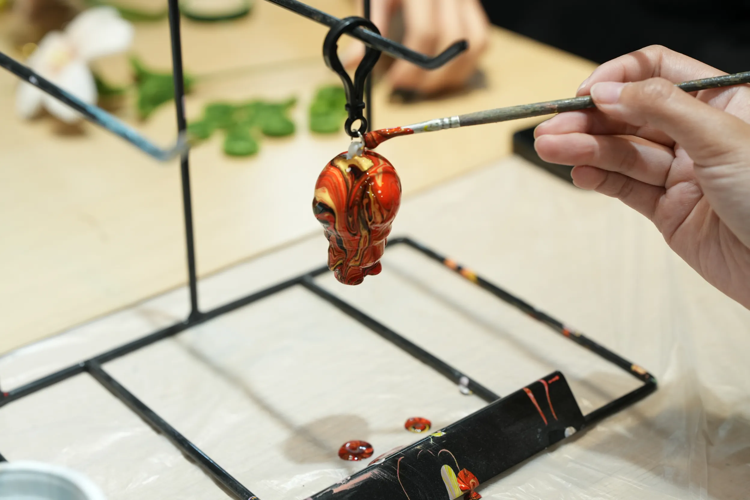 ▼可以用畫筆沾取顏料,來填補吊飾上尚未覆蓋的空白區域。