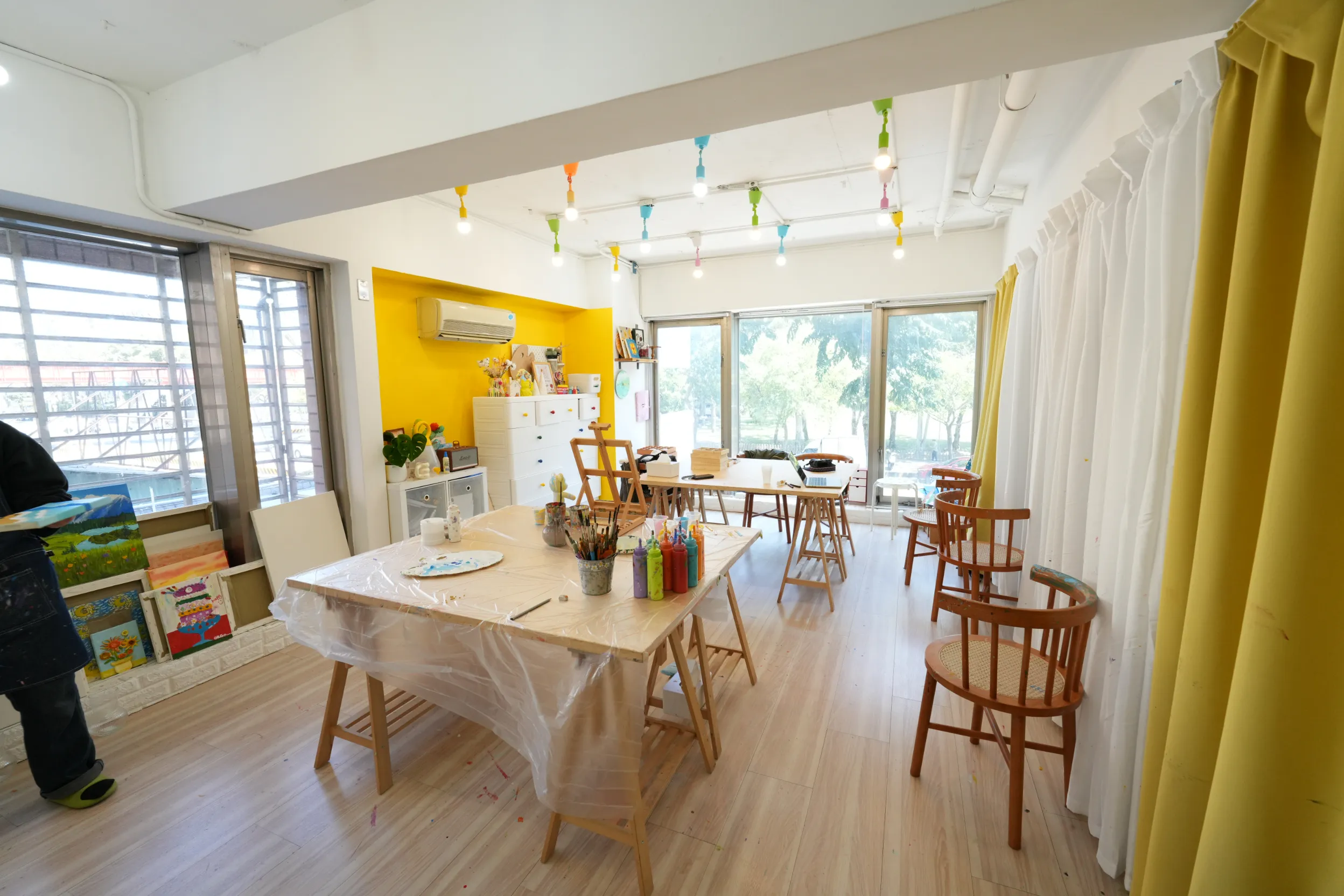 ▼教室空間雖不大,但採光十分明亮,加上簡潔布局與柔和色調,讓整體氛圍顯得格外舒適,待在裡面創作讓人感覺很放鬆。
