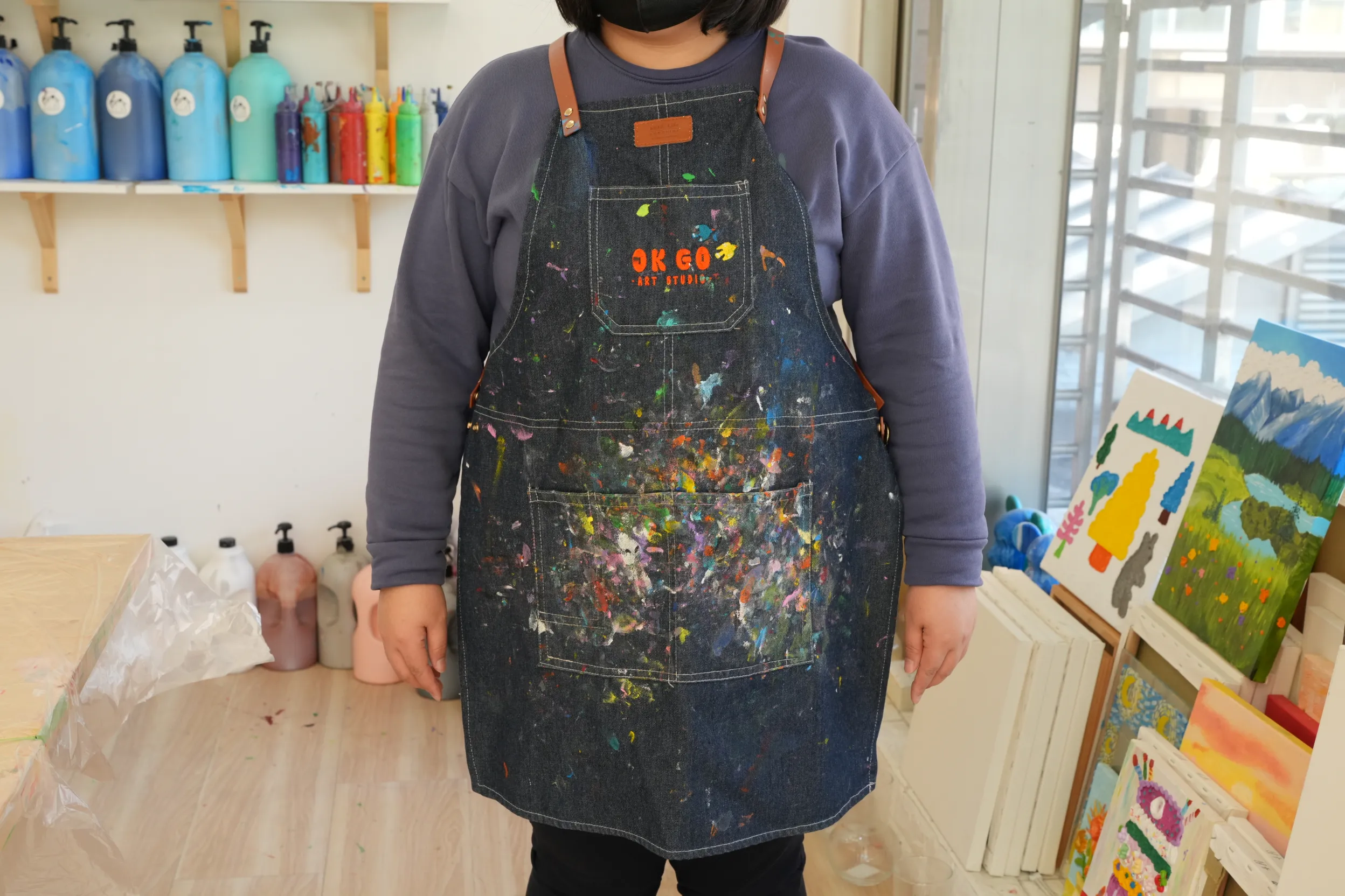 ▼「OK GO ART STUDIO」貼心提供圍裙,讓大家在創作時能放心動手,不用擔心弄髒衣服。
